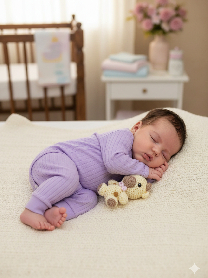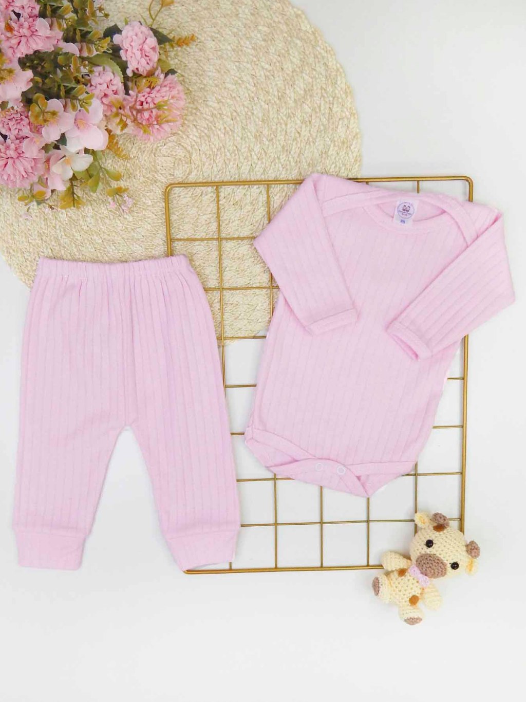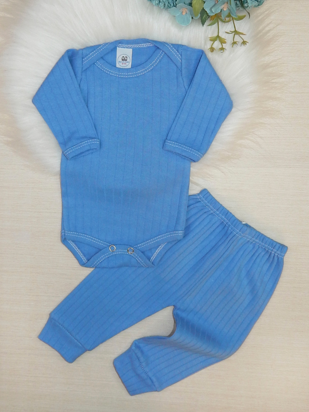 Conjunto Bebê Recém Nascido Algodão Canelado Liso 2 Peças