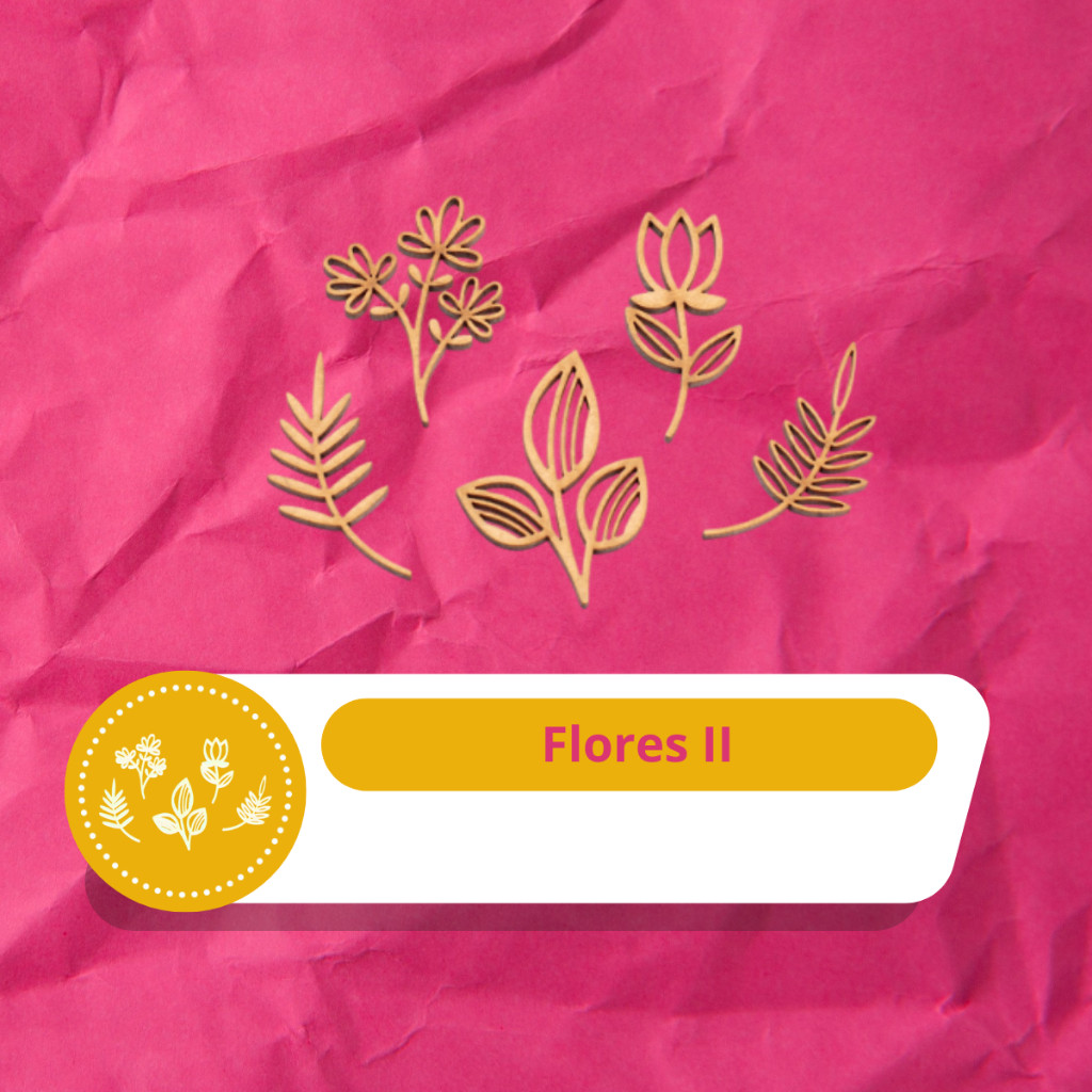 Kit 5 Apliques Flores II Jardim Decorativo Artesanato Decoração Recorte A Laser MDF Cru
