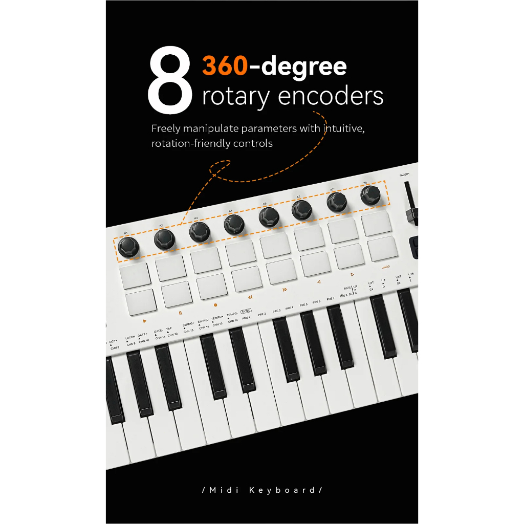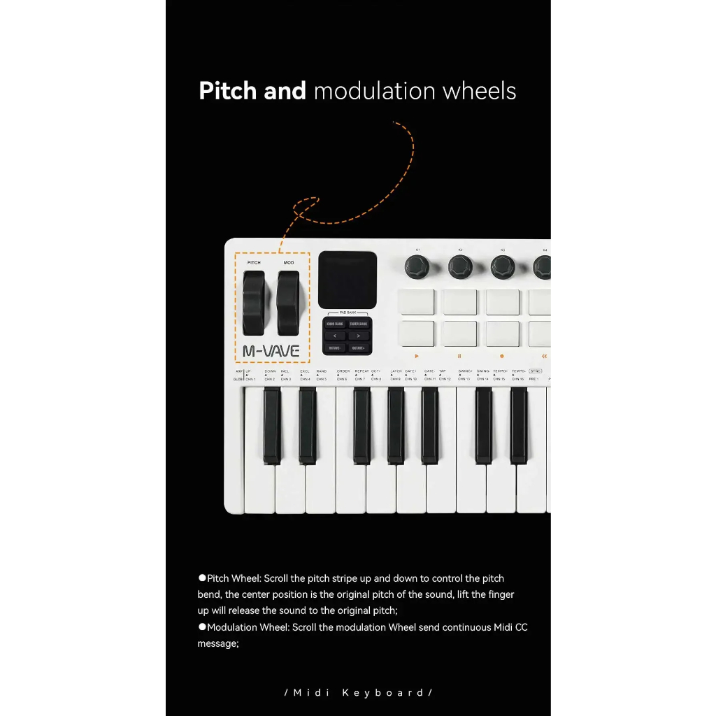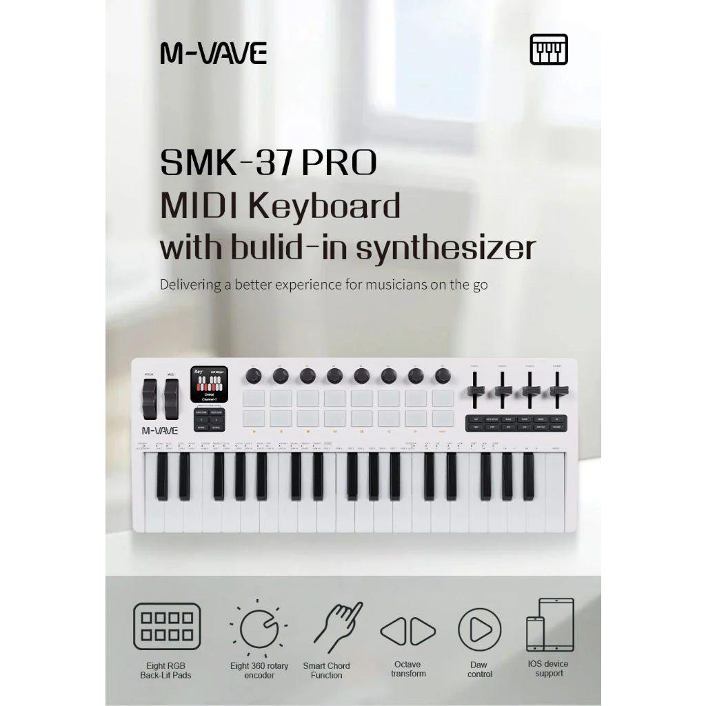 Teclado MIDI M-VAVE SMK-37 PRO 37 teclas 16 pads retroiluminados RGB Alcance de 3 oitavas Suporta conexão sem fio com