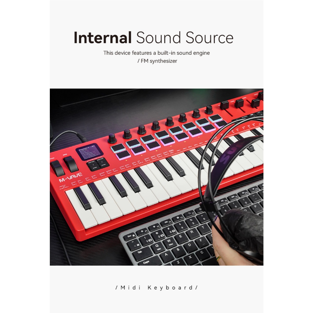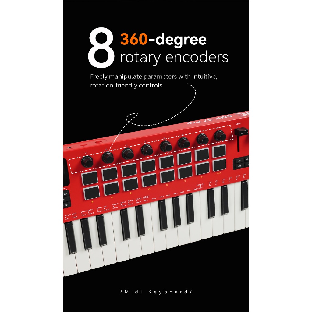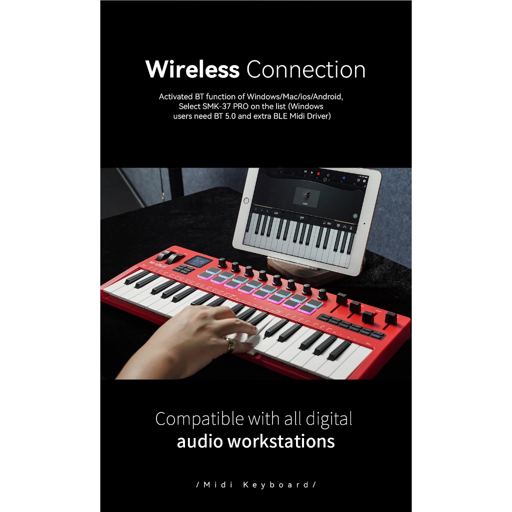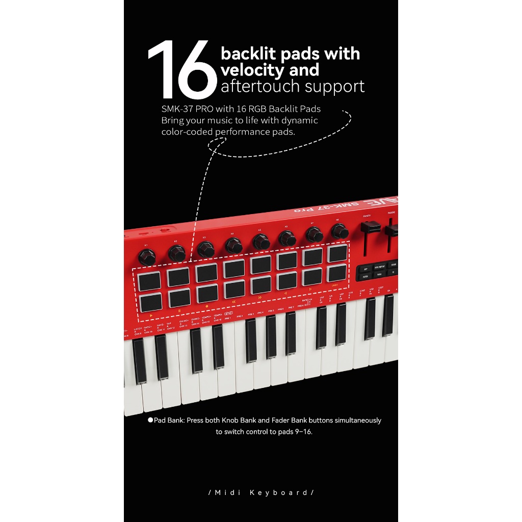 Controlador MIDI para teclado M-VAVE SMK-37 PRO 37 teclas 16 pads RGB e 8 botões Suporta conexão sem fio Sistemas de