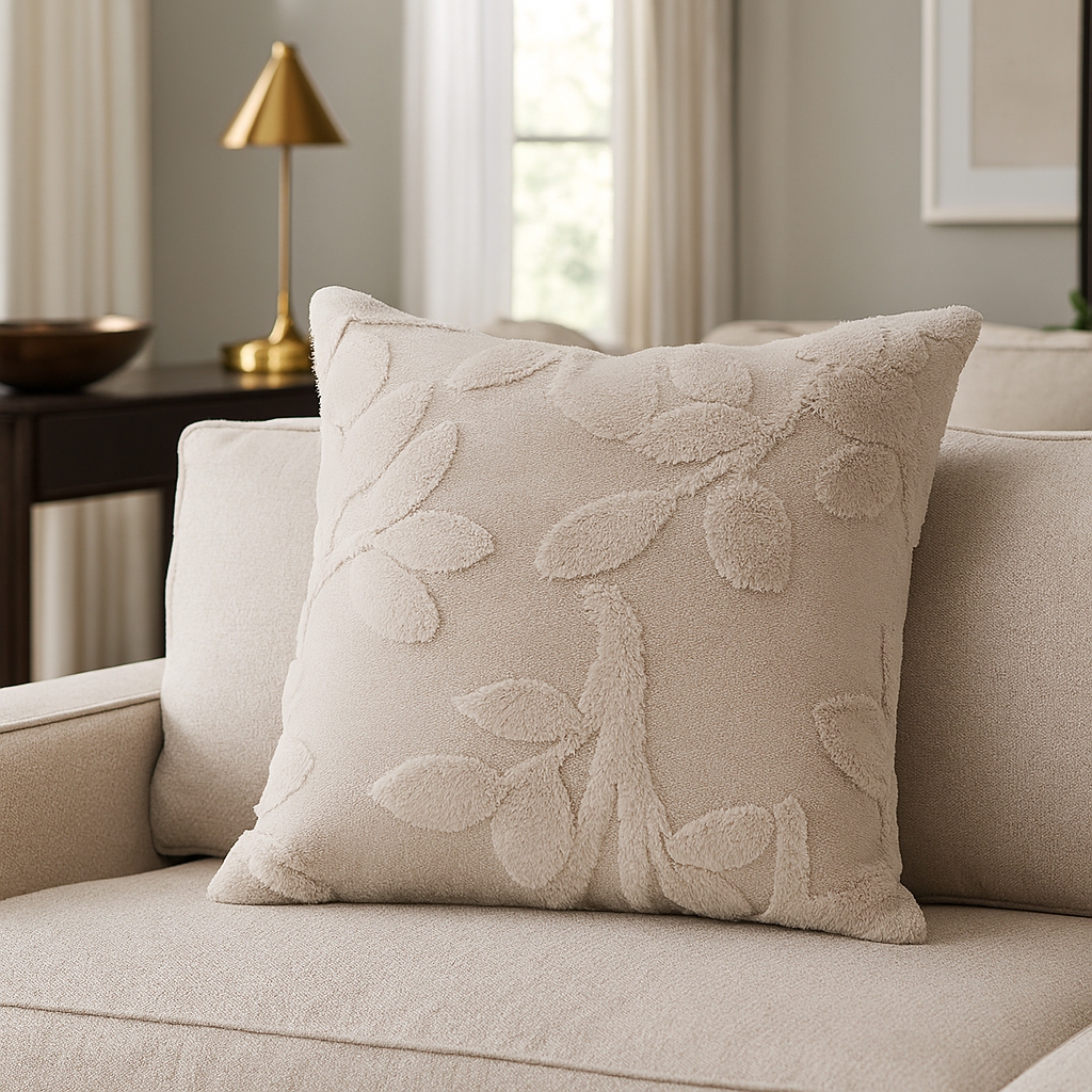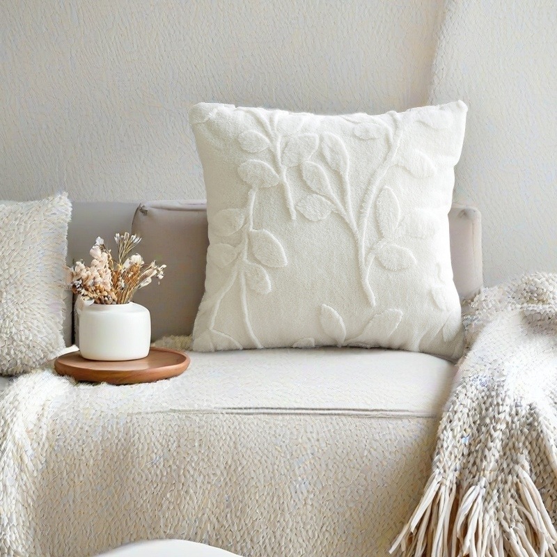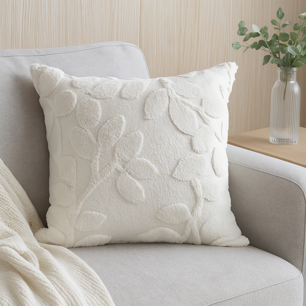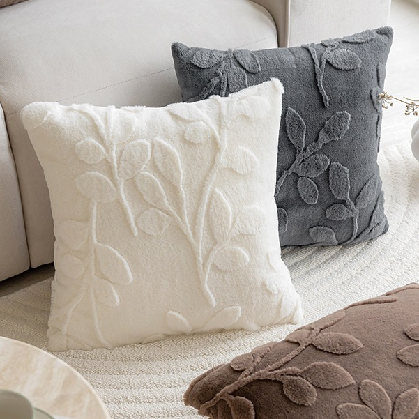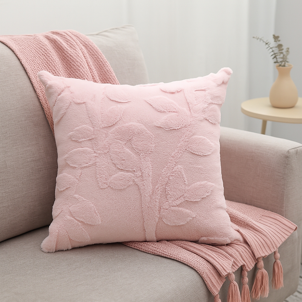Capa de Almofada Relevo Floral Pelo de Coelho Macio Conforto