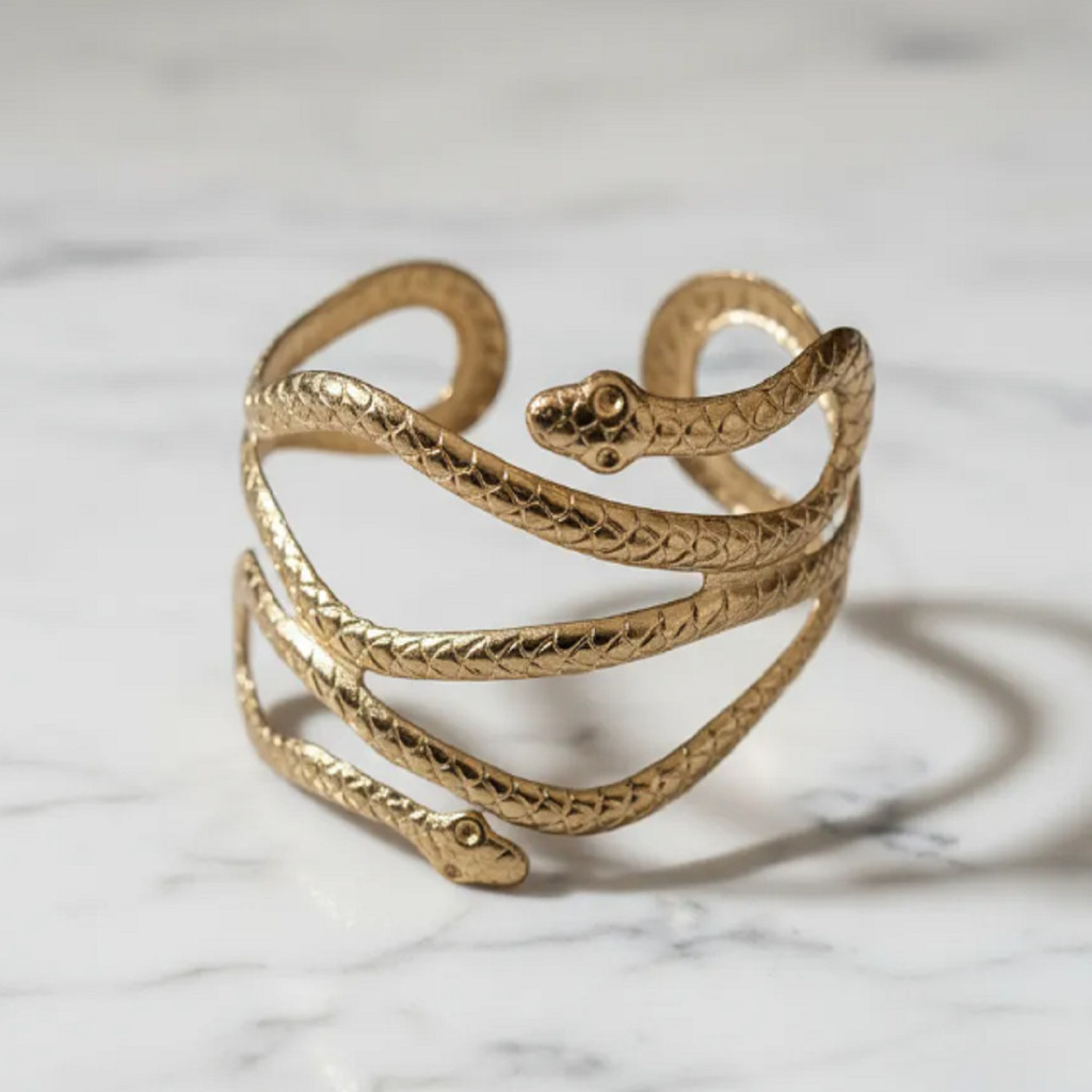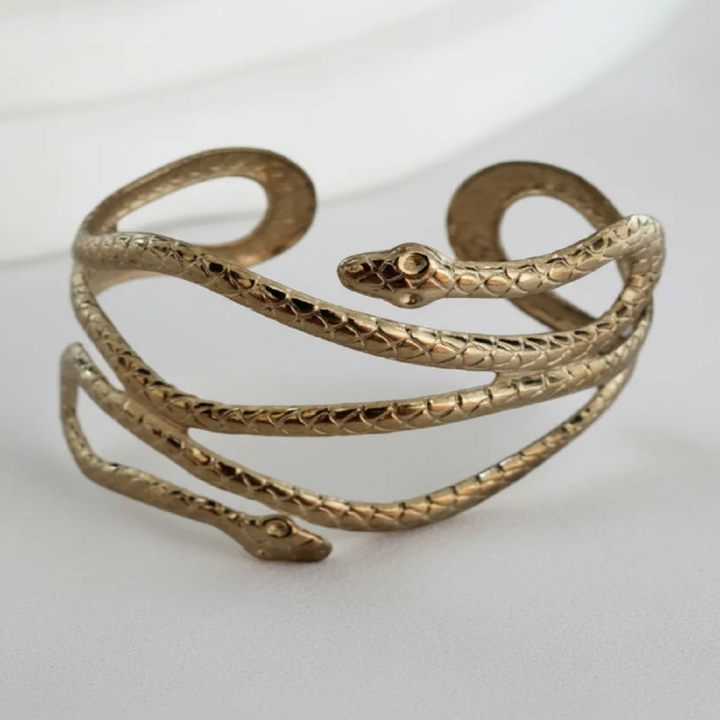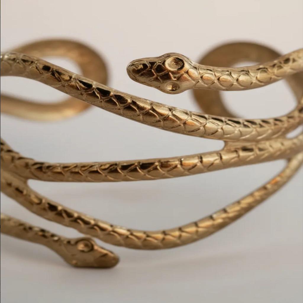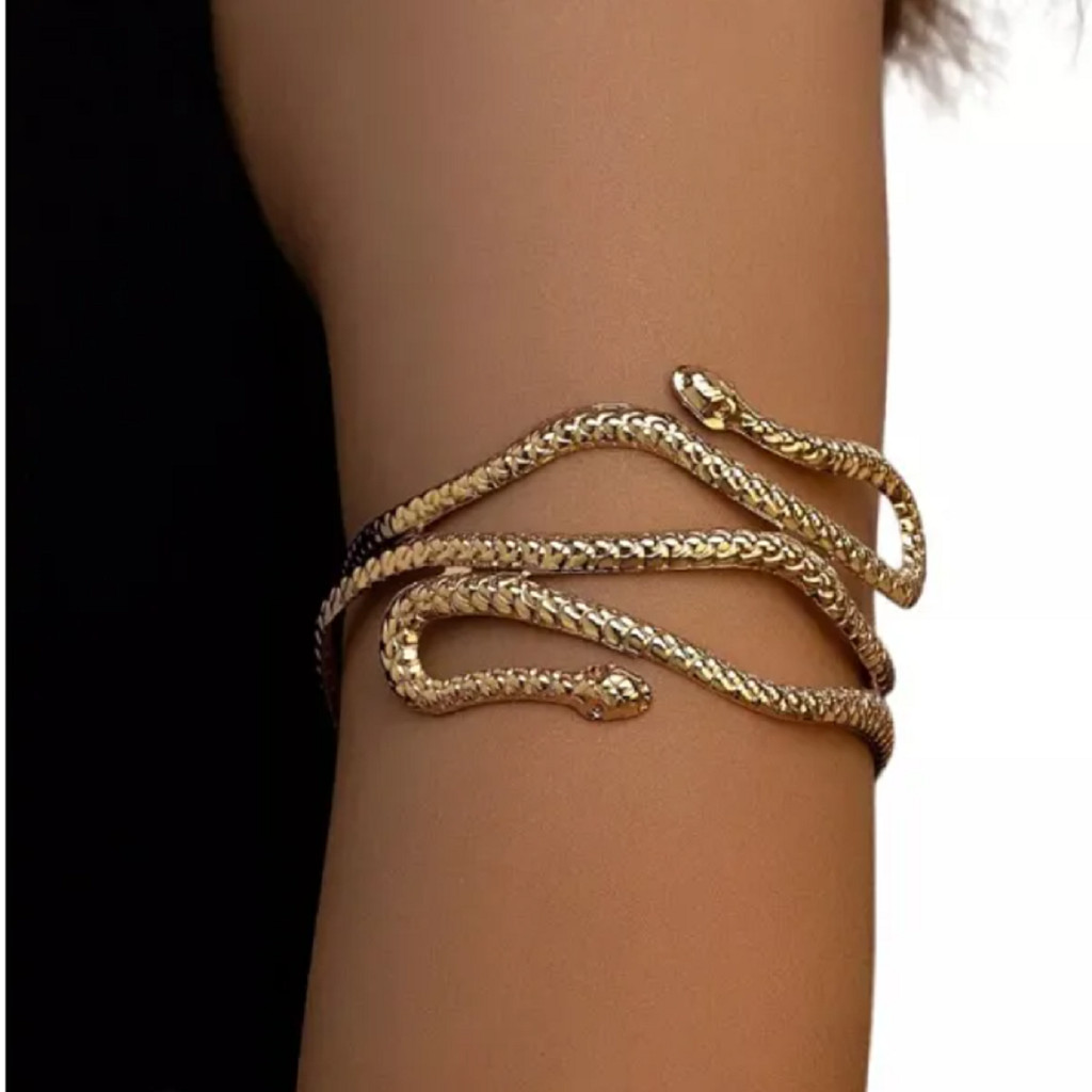 Bracelete Cobra De Metal Dourado Espiral Luxo Egípcio Grego Teatro Festas