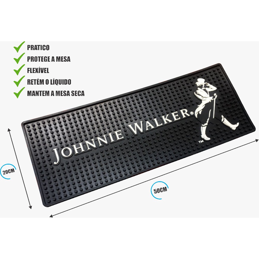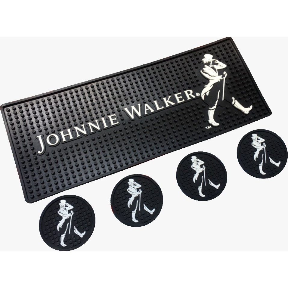 Tapete Bar mat Johnnie Walker 50x20 + 4 Porta Copos emborrachados