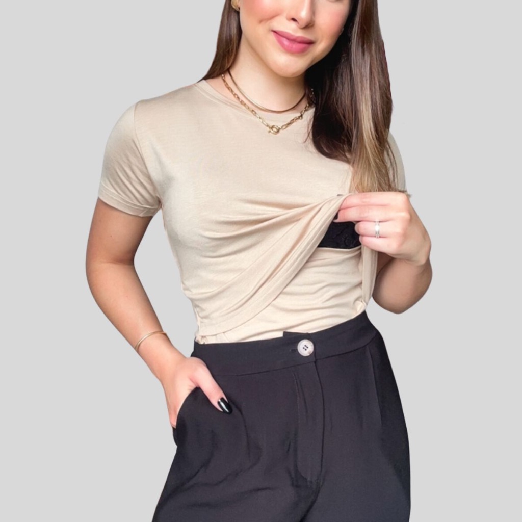 KIT 3 Blusa Amamentação Camiseta Maternidade