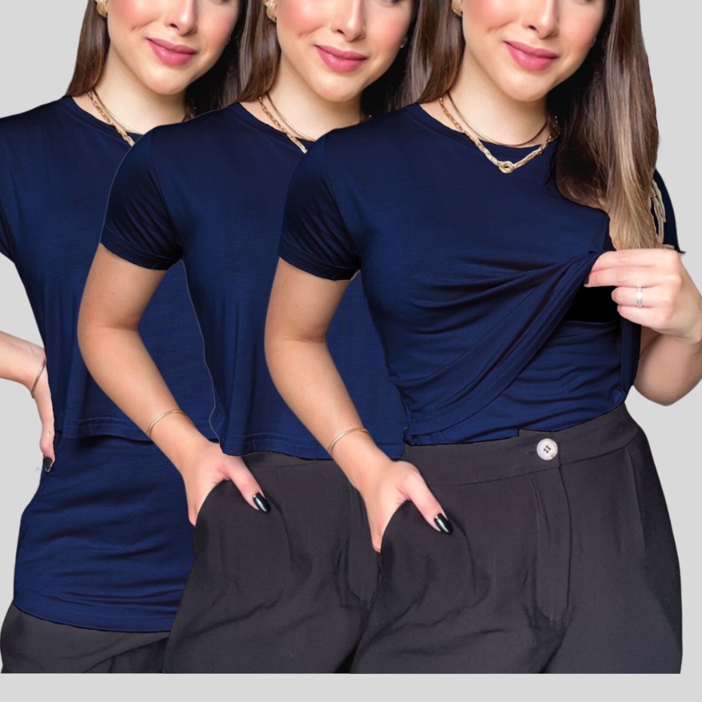 KIT 3 Camisetas de Amamentação blusa manga curta