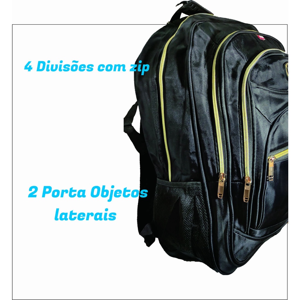 Mochila Preta Reforçada Grande Impermeável - Com Entrada Para Fone de Ouvido e USB Para Carregadores Portáteis.