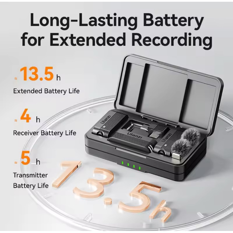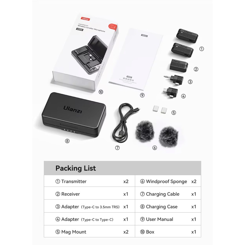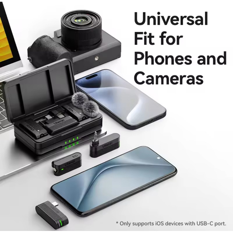 Microfone Lapela Ulanzi A100 Sem Fio Profissional 20M Áudio Vídeo para iPhone 15 Android Phone Camera