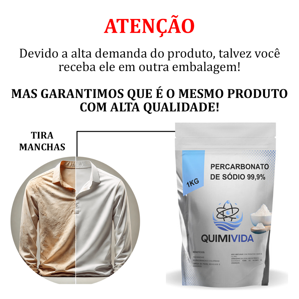 Alvejante Percarbonato 99% Pure - Tira Manchas Roupas Brancas e Coloridas - 1KG