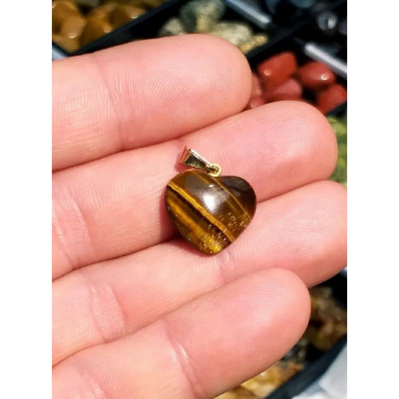 PINGENTE CORAÇÃO DE OLHO DE TIGRE PEDRA NATURAL TAMANHO 1,5 CM