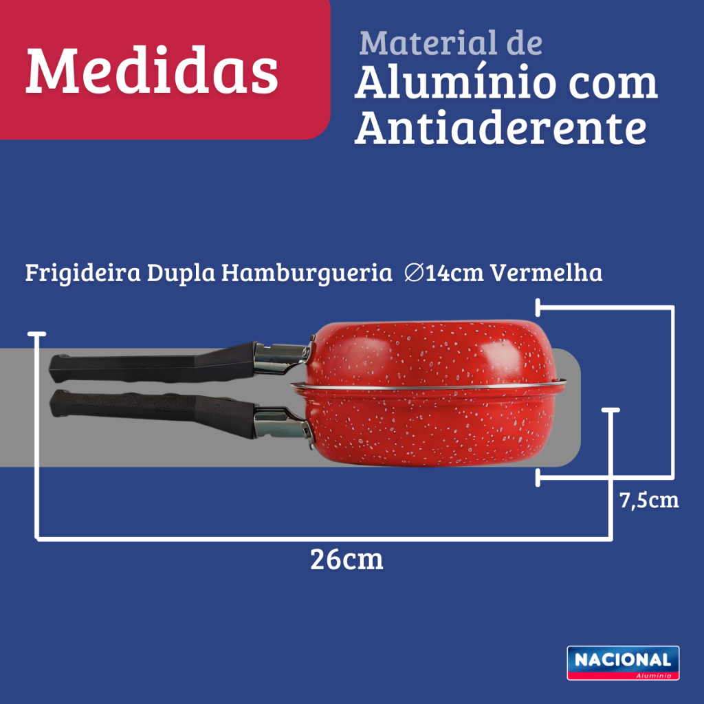 Frigideira Hamburgueira Dupla Antiaderente 14Cm Vermelho Nacional