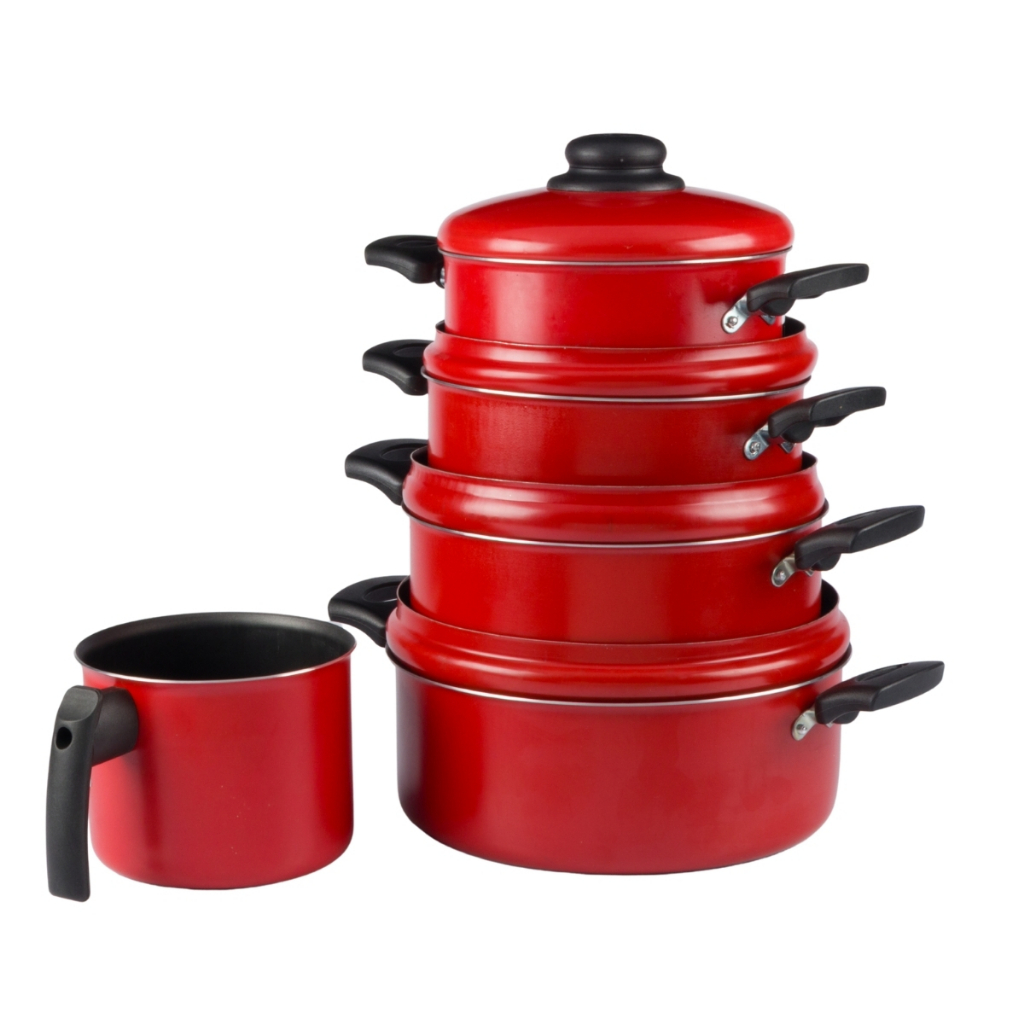 Jogo De Panelas Com Fervedor 5 Peças Vermelho Nacional