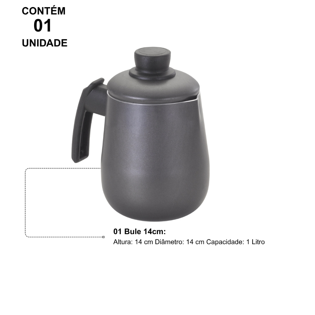 Bule Antiaderente 1 Litro Grafite Nacional