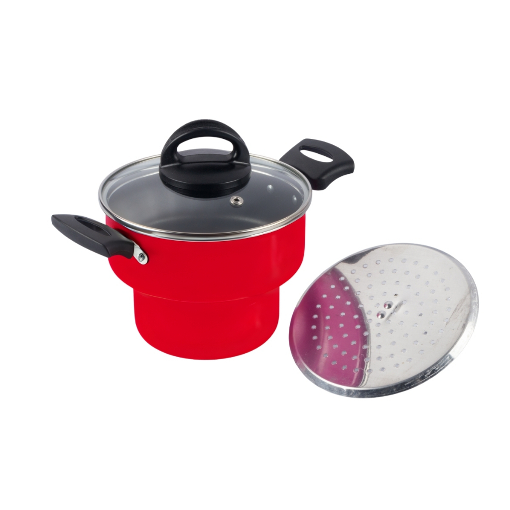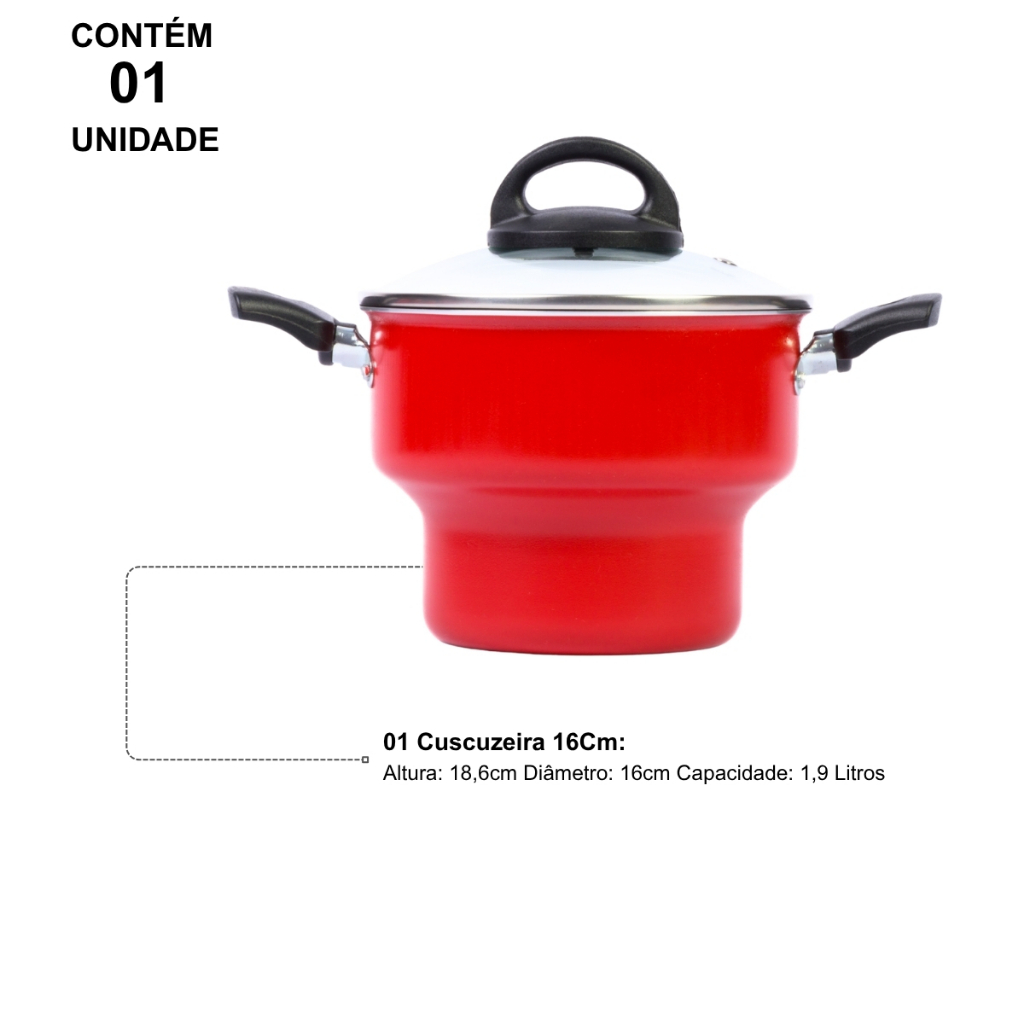 Cuscuzeira Antiaderente Tampa Vidro 16Cm Vermelho Nacional
