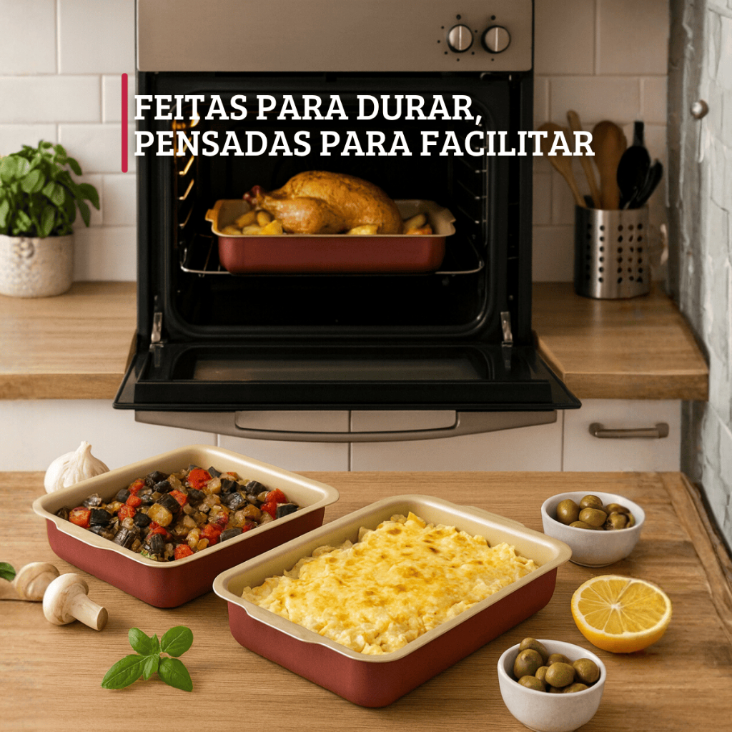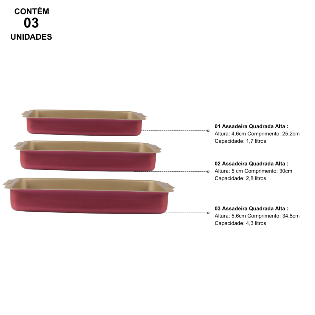Jogo De Assadeiras Retangular Antiaderente 3 Peças Cereja Nacional