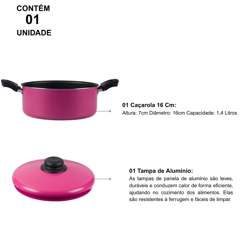 Caçarola Antiaderente Com Tampa 16Cm 1,4L Rosa Nacional
