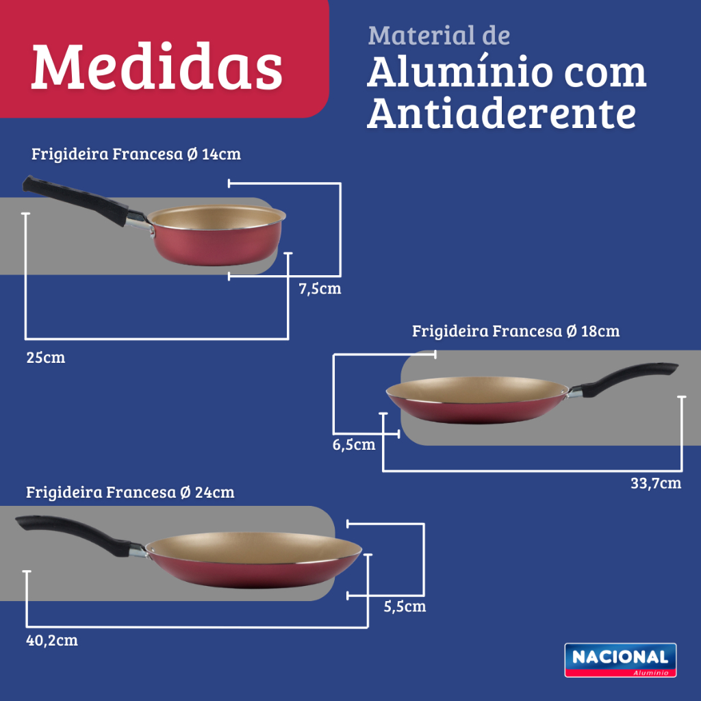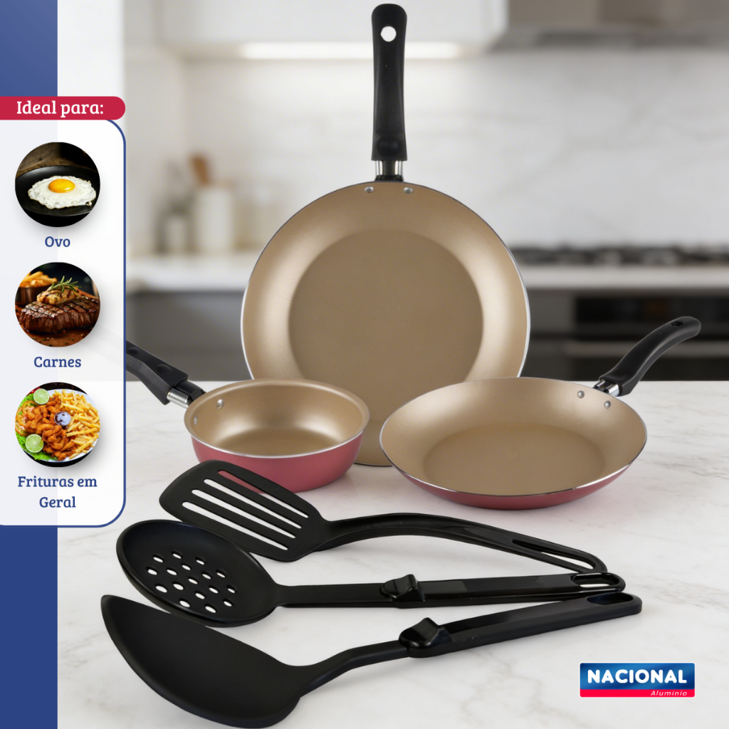 Jogo Frigideira Francesa 3 Peças E 3 Espatula Nacional