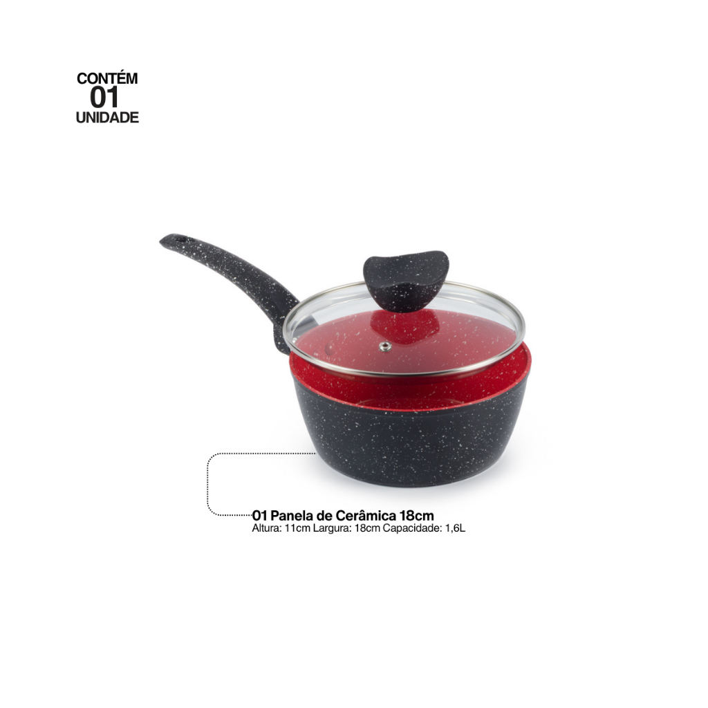 Panela De Cerâmica Indução Antiaderente 18cm Preto Red