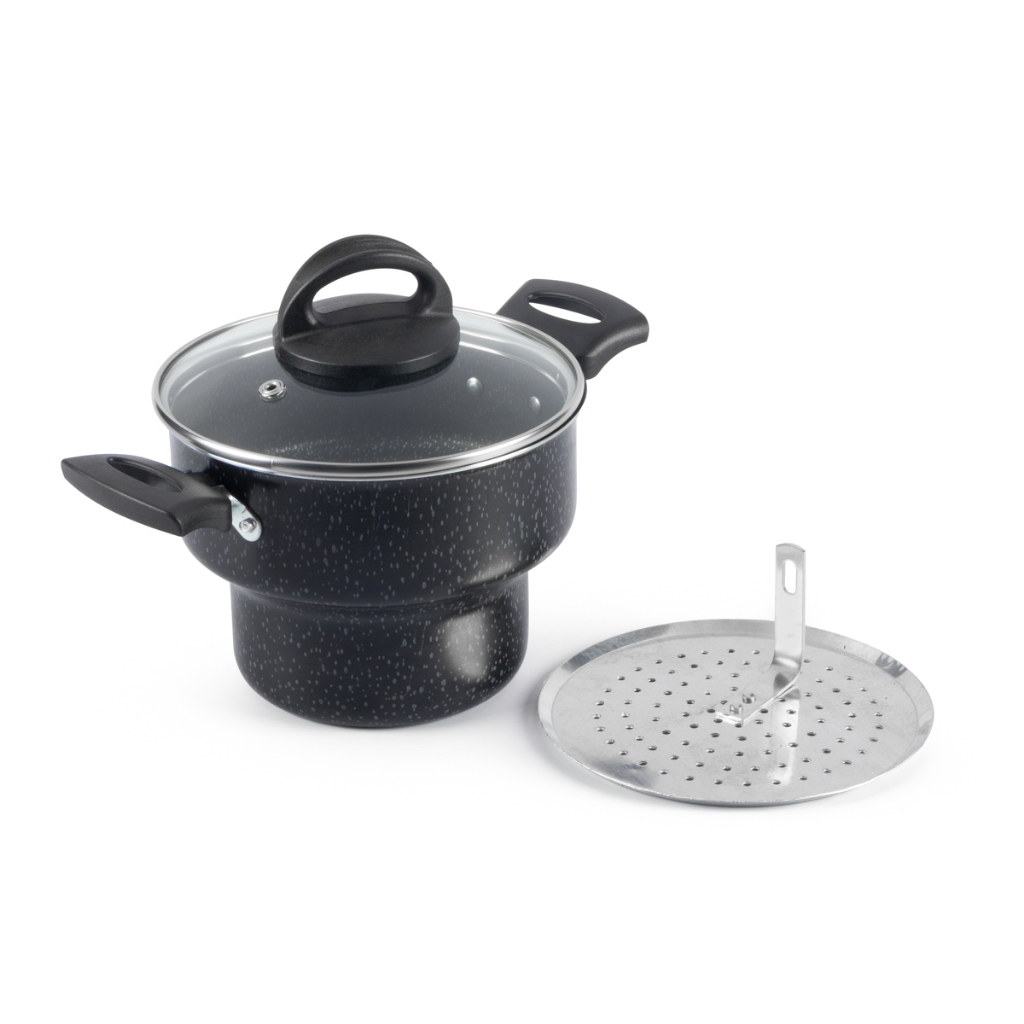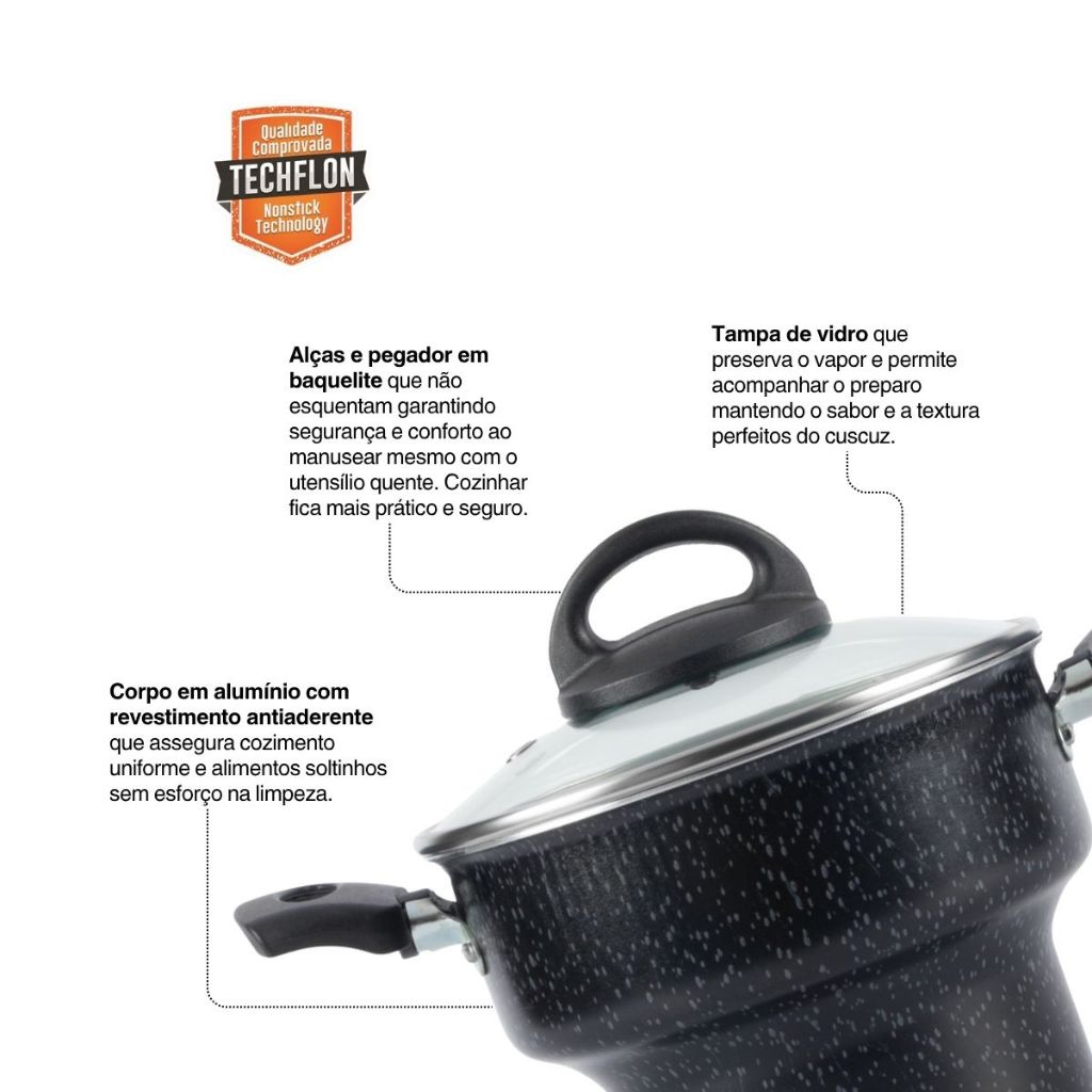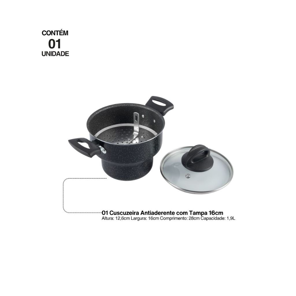 Cuscuzeira Antiaderente 16Cm Tampa De Vidro Preto Nacional