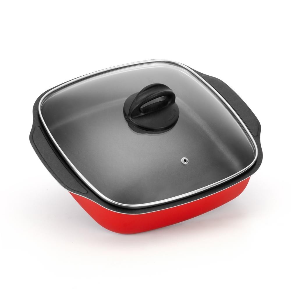 Assadeira Quadrada Antiaderente Com Tampa Vermelha Nacional