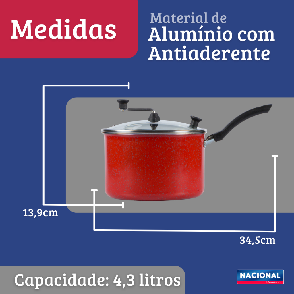 Pipoqueira Antiaderente Tampa De Vidro 4L Vermelho Nacional