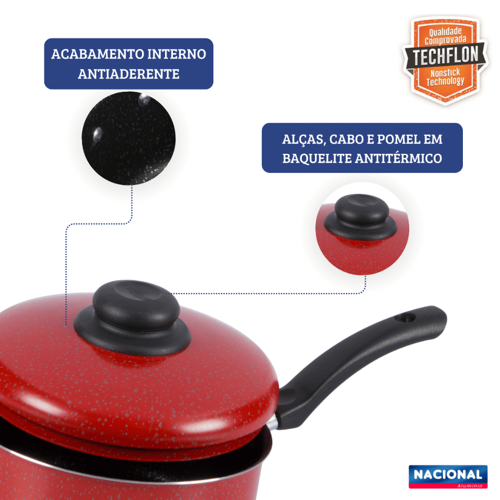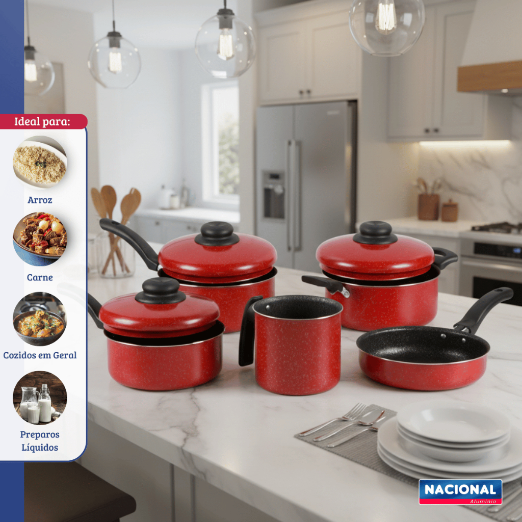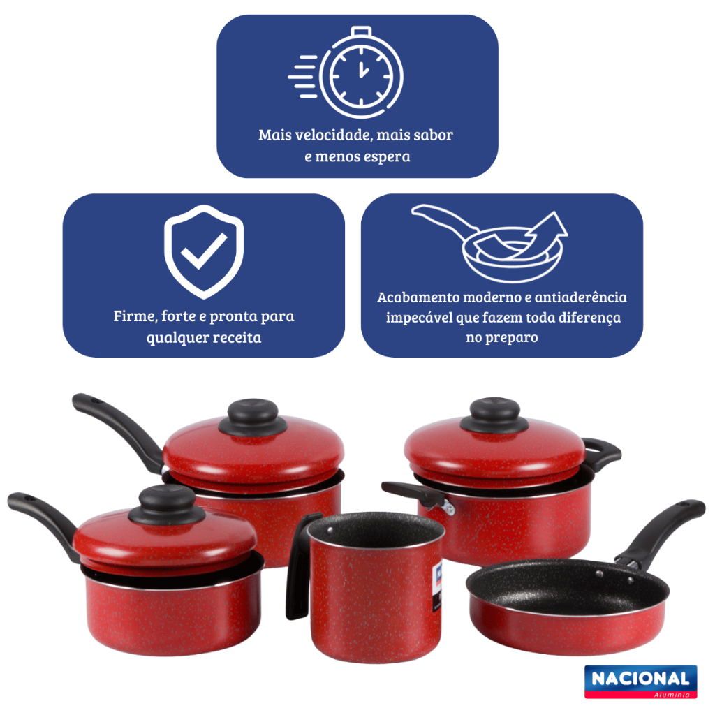 Jogo Panelas Tradicional Color 5 Peças Vermelho Nacional