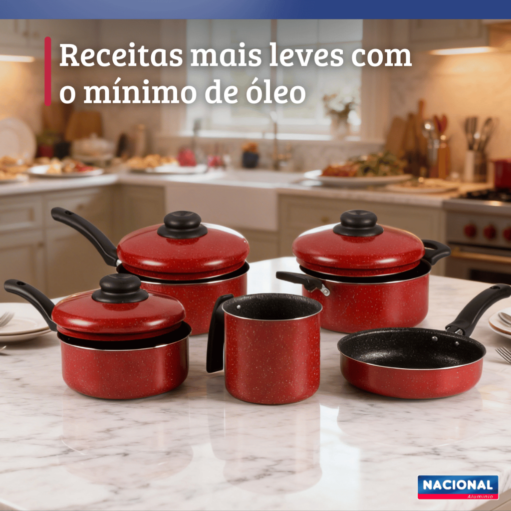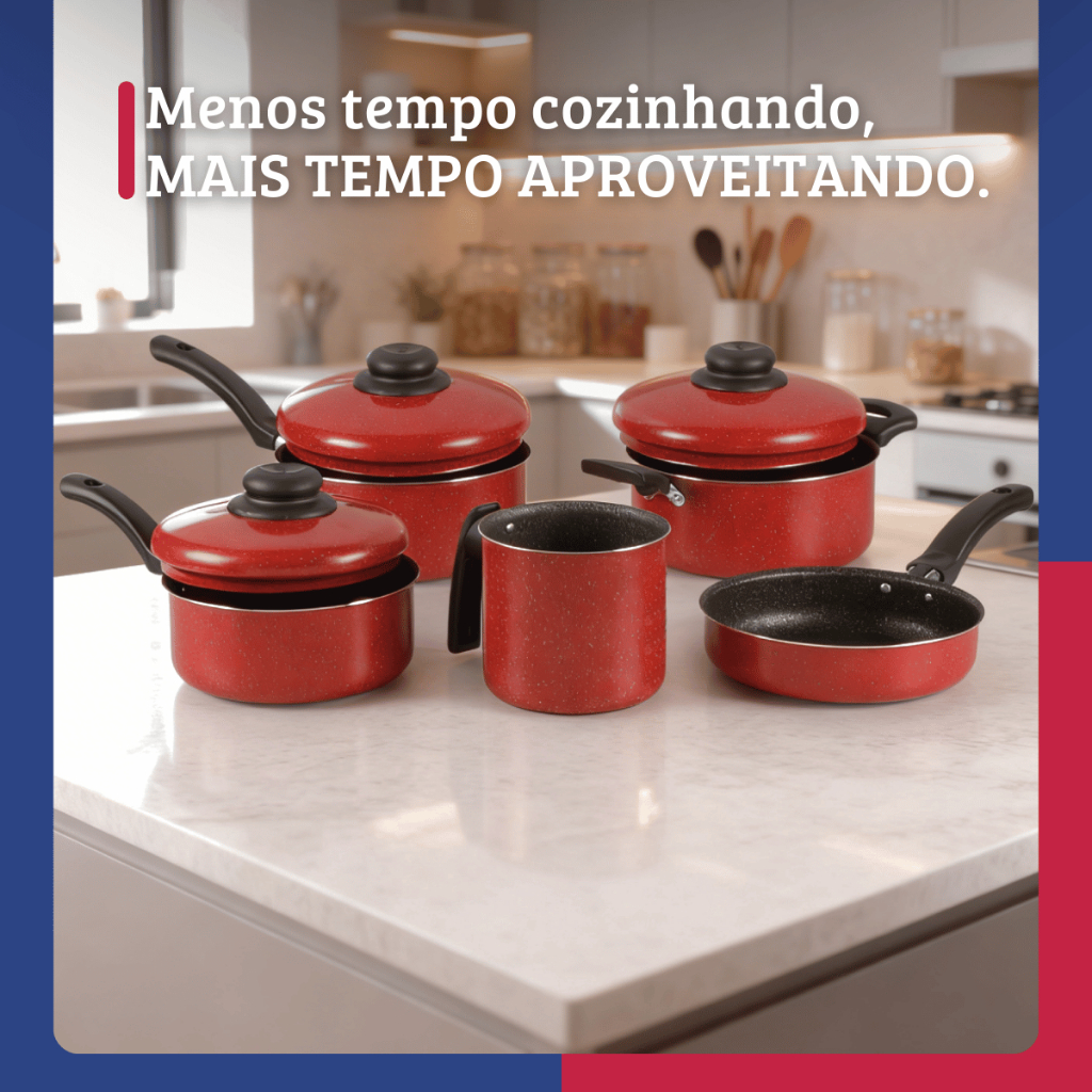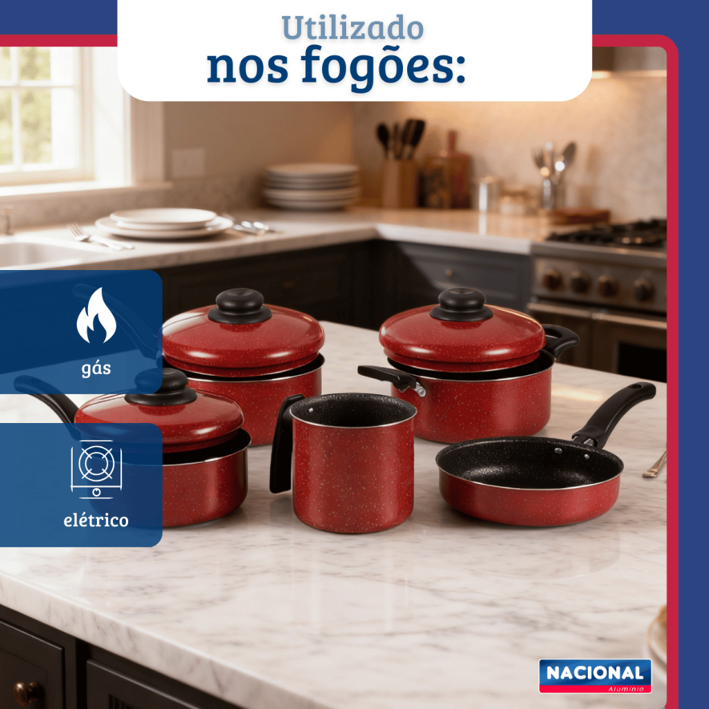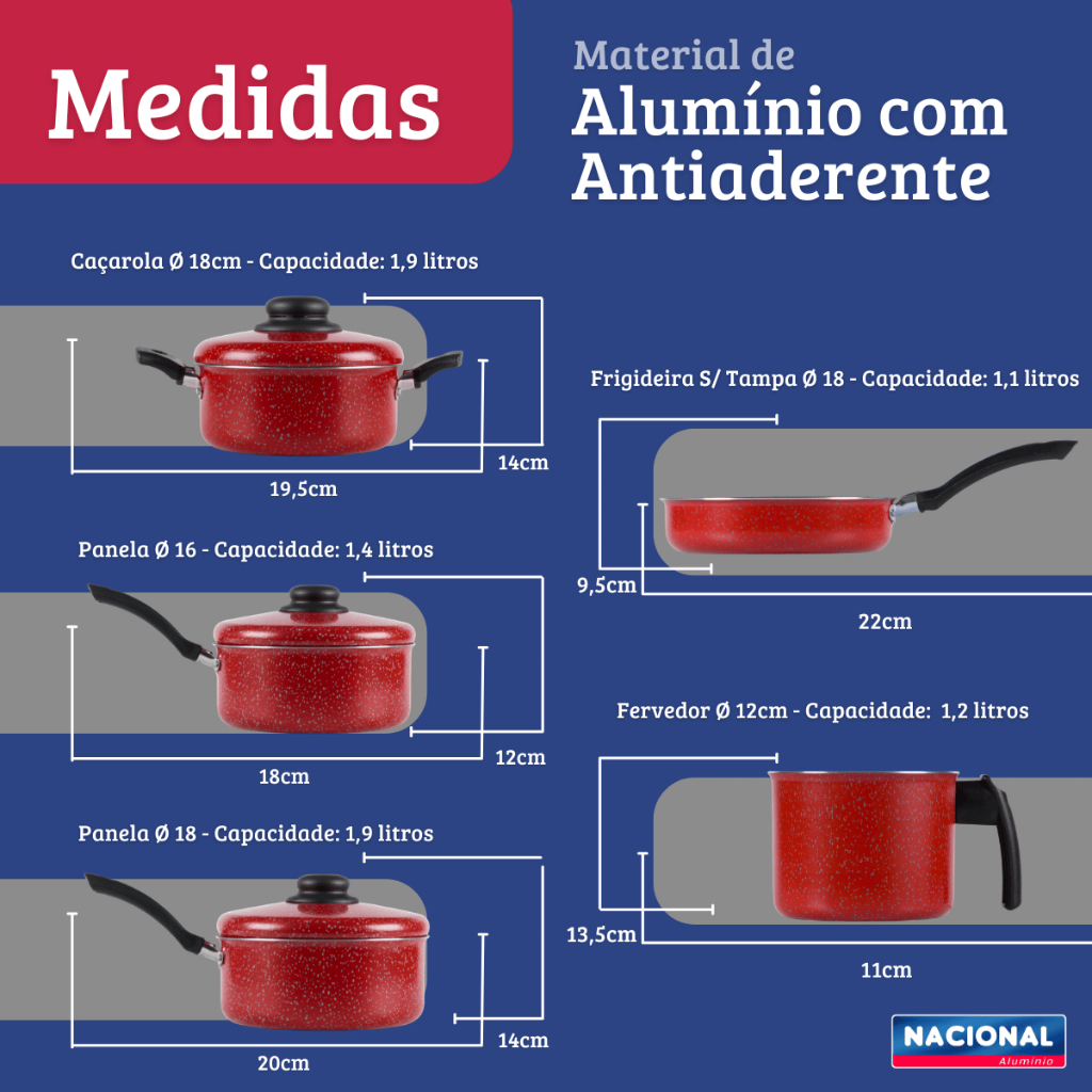 Jogo Panelas Tradicional Color 5 Peças Vermelho Nacional