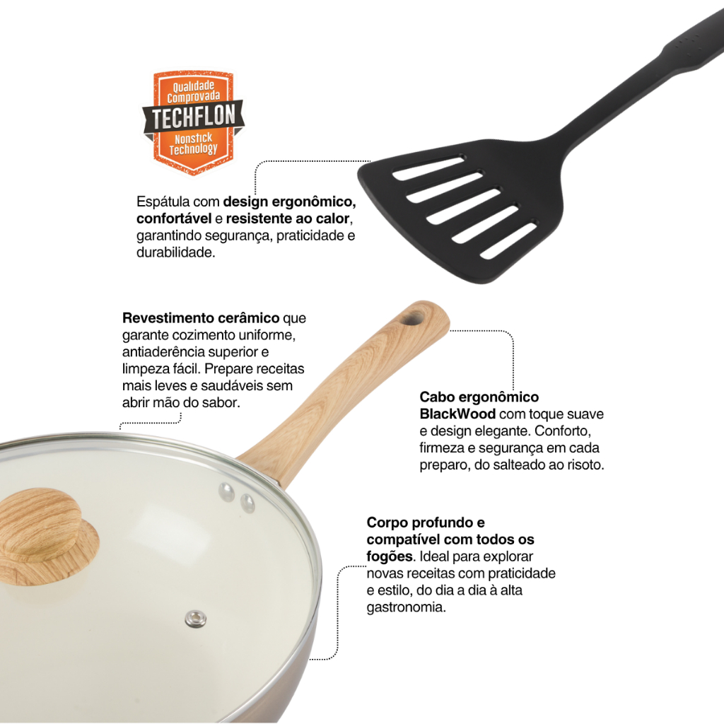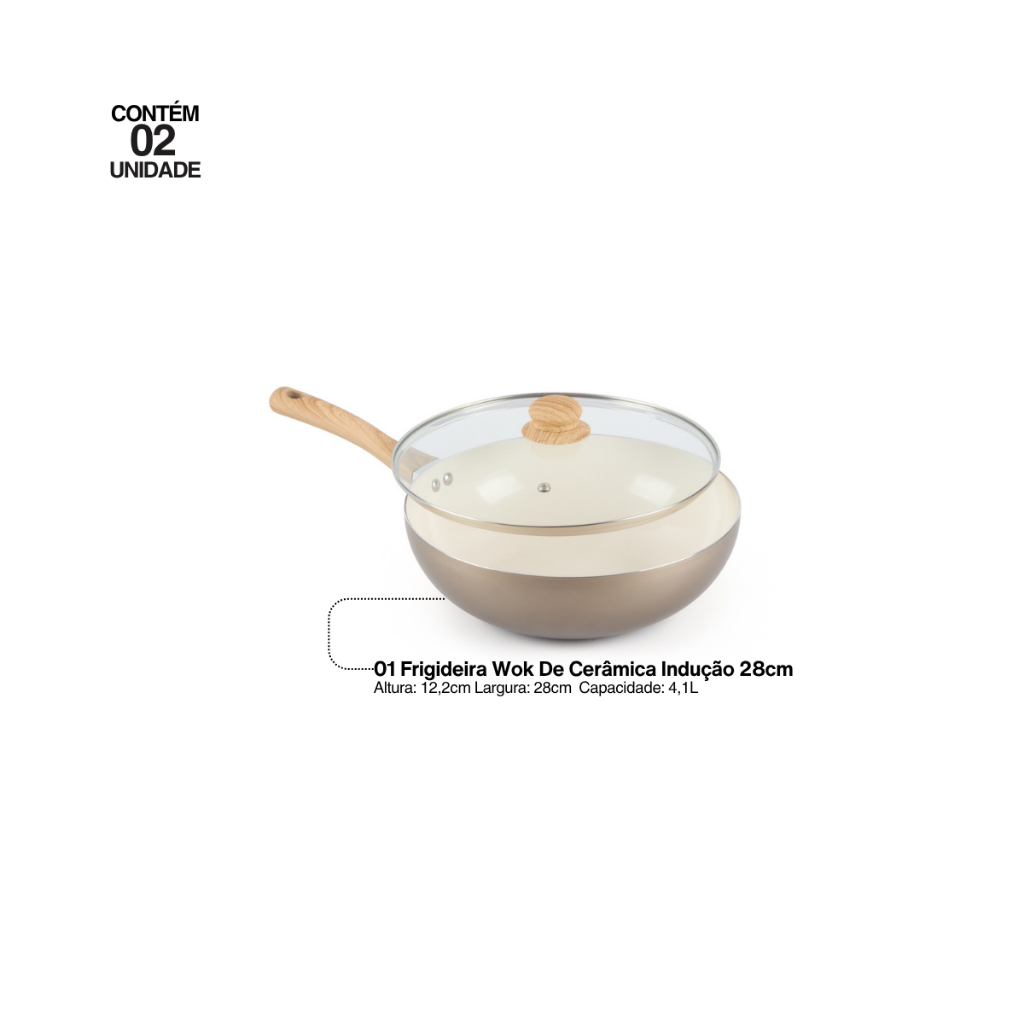 Frigideira Wok De Cerâmica Indução e Gás 28cm Vanilla Mais Espátula