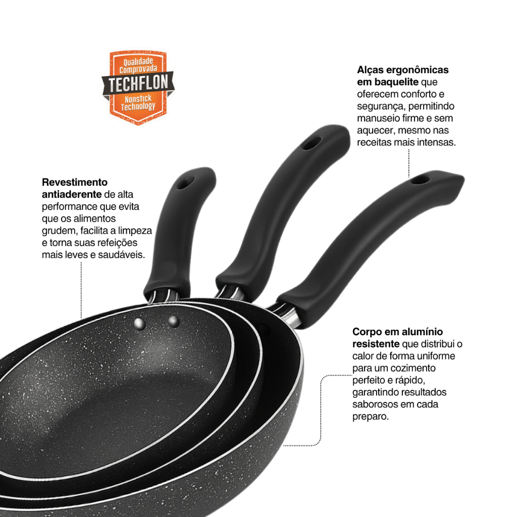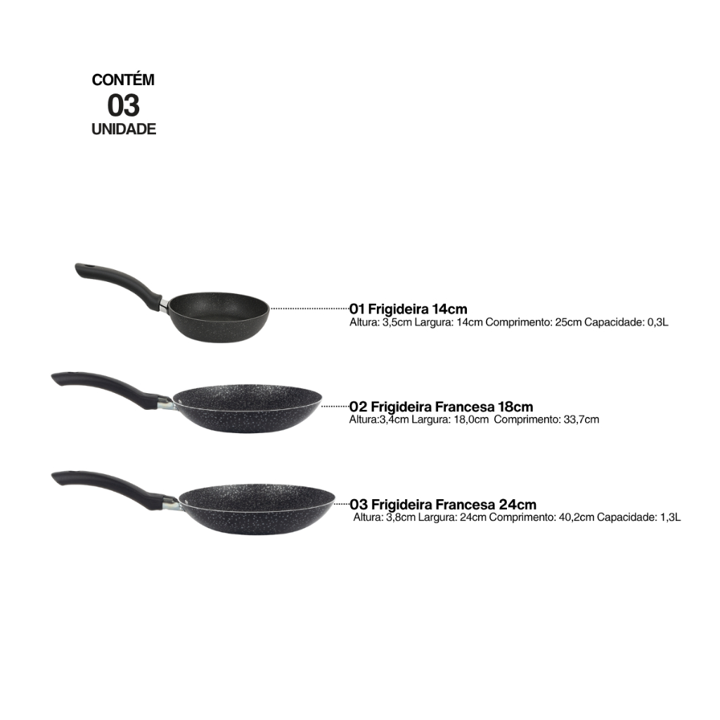 Jogo De Frigideiras Francesas 3 Peças 14 18 24Cm Preto Nacional