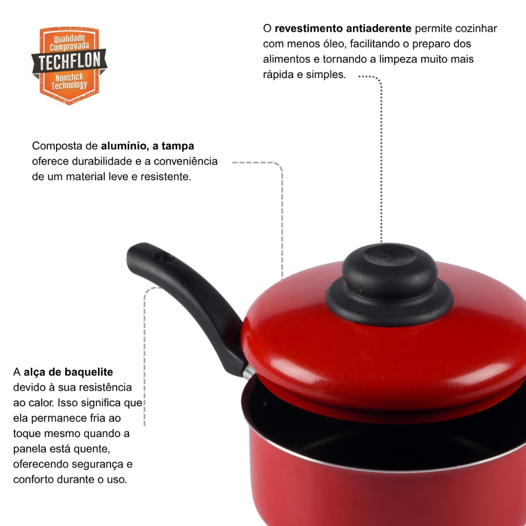 Panela Antiaderente Tampa De Alumínio 20cm Vermelho Nacional