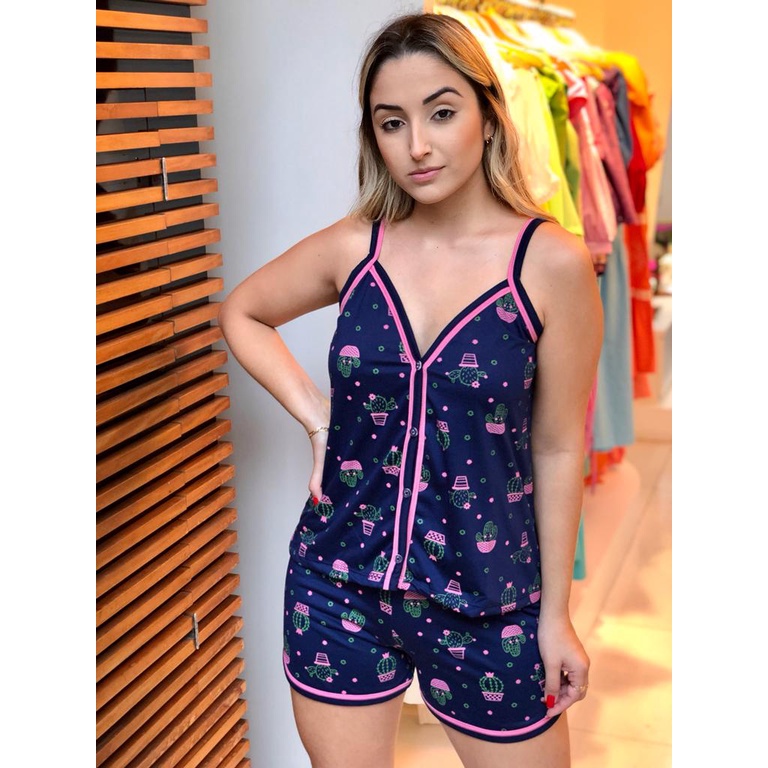 Pijama Alcinha Aberto Com Botões Verão Baby Doll Amamentação Conjunto Feminino Cirurgico Gestante