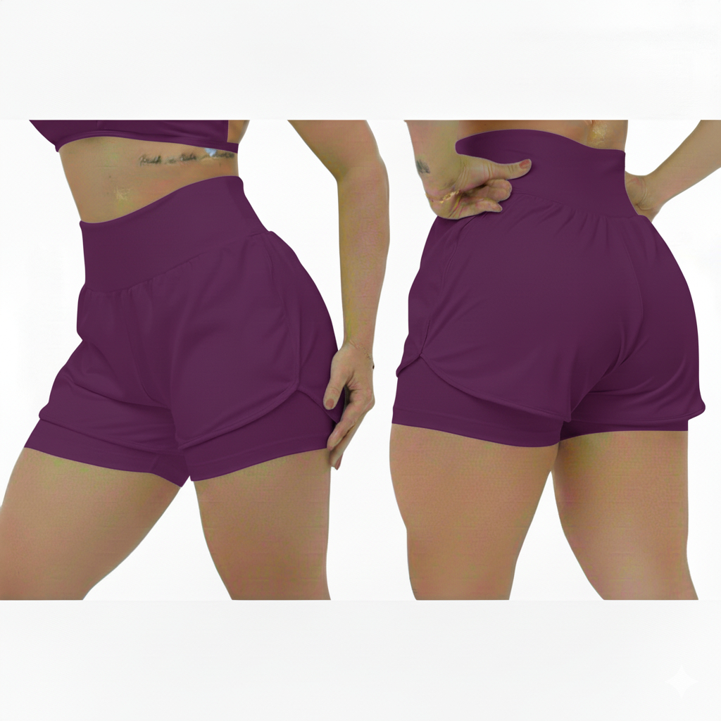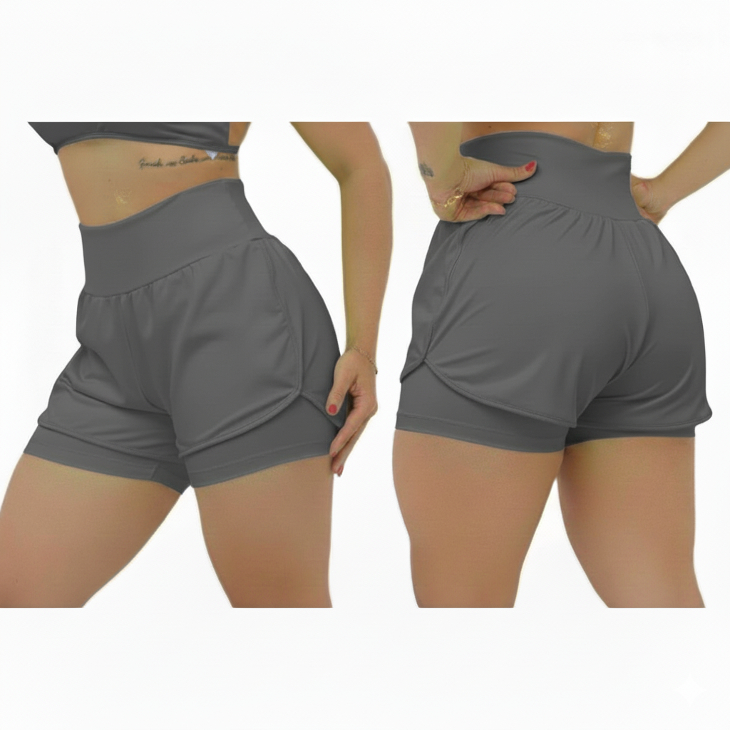 Short Duplo Fitness Academia Feminino Short Treino Caminhada