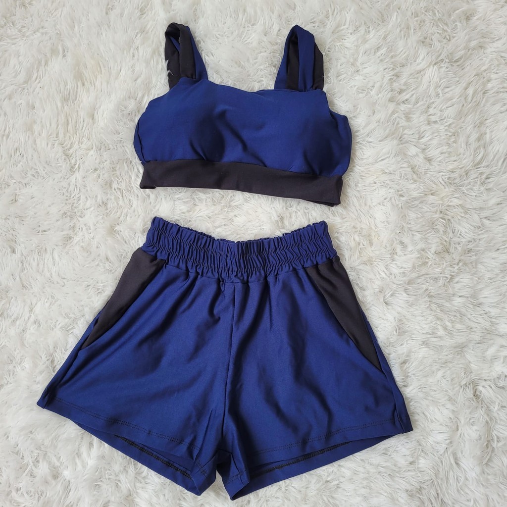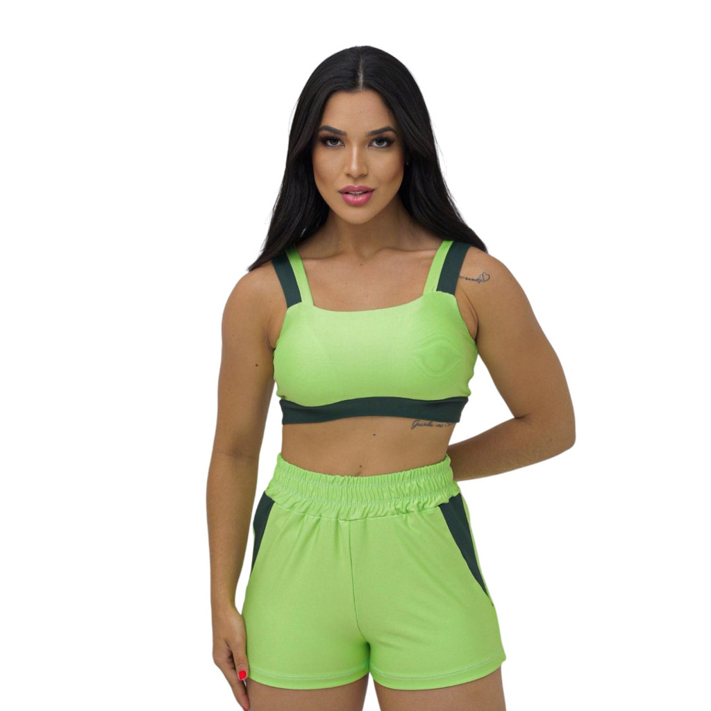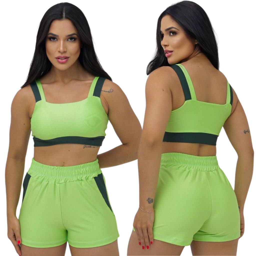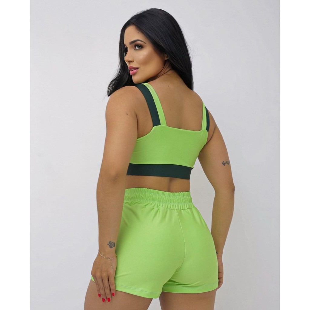 Conjunto Fitness Feminino Short e Top bojo Removivel Roupa Academia Treino sem transparência