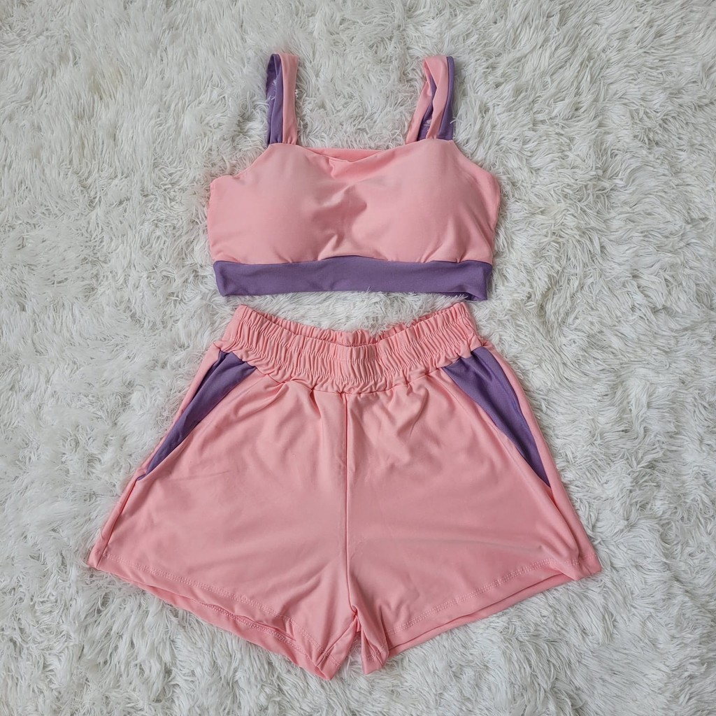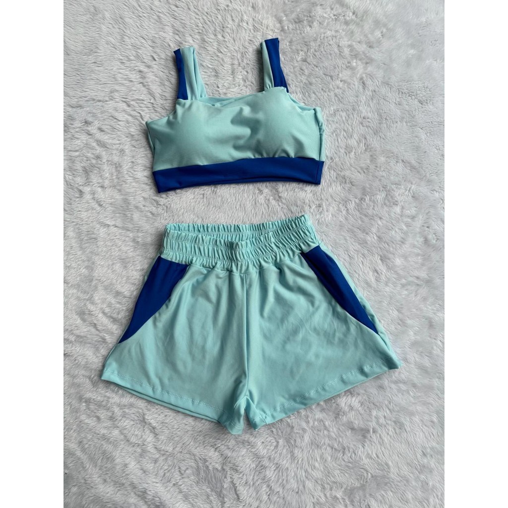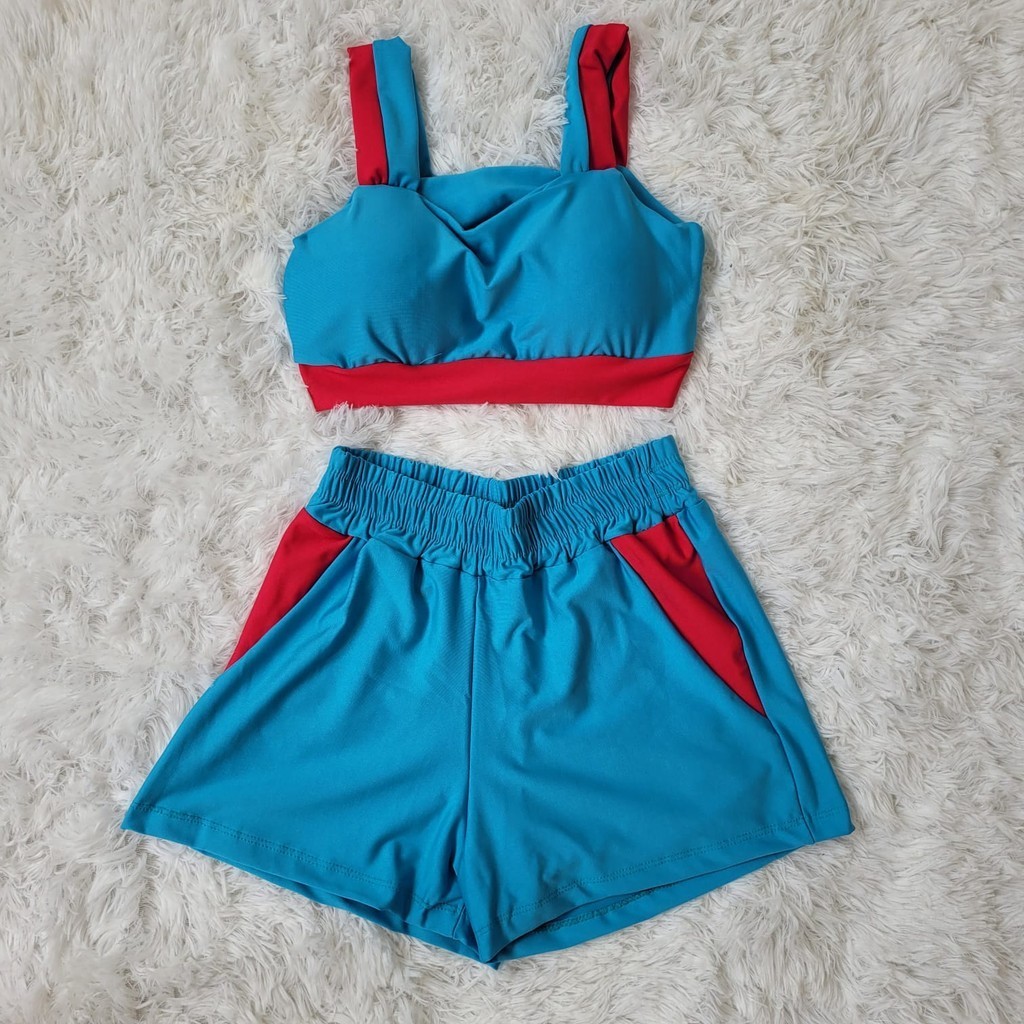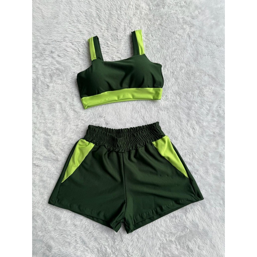 Conjunto Fitness Feminino Short e Top bojo Removivel Roupa Academia Treino sem transparência