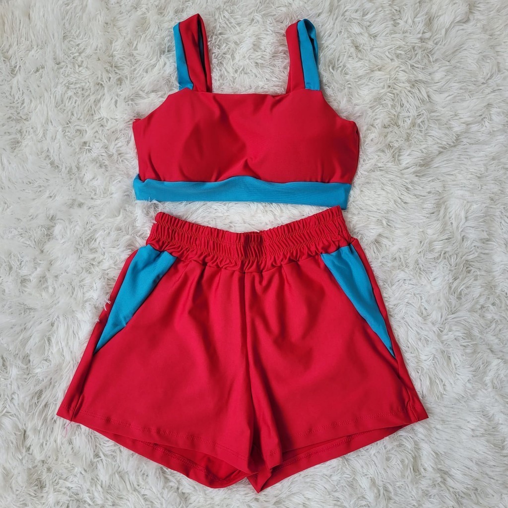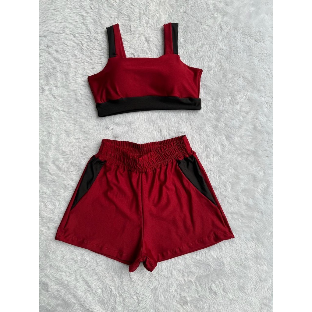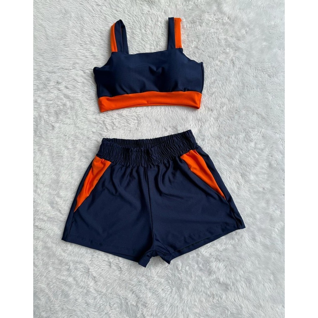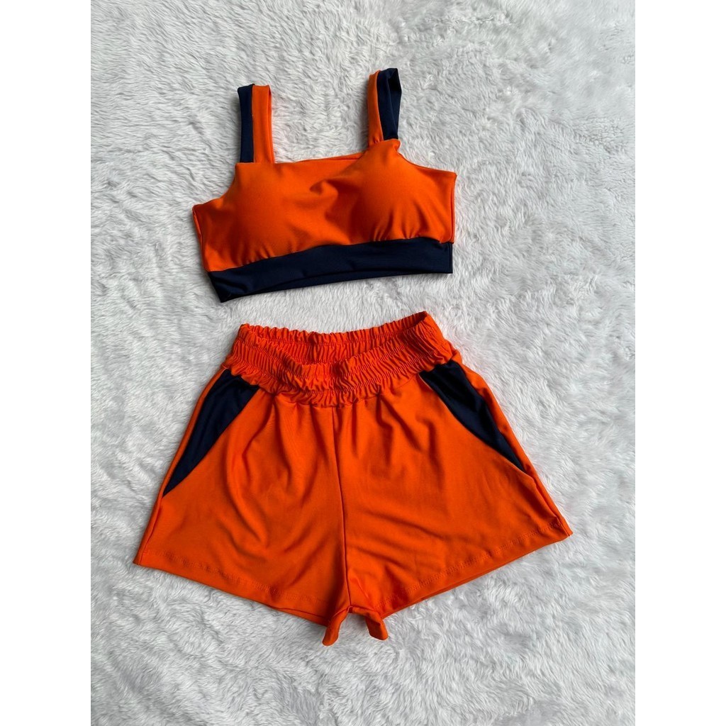 Conjunto Fitness Feminino Short e Top bojo Removivel Roupa Academia Treino sem transparência