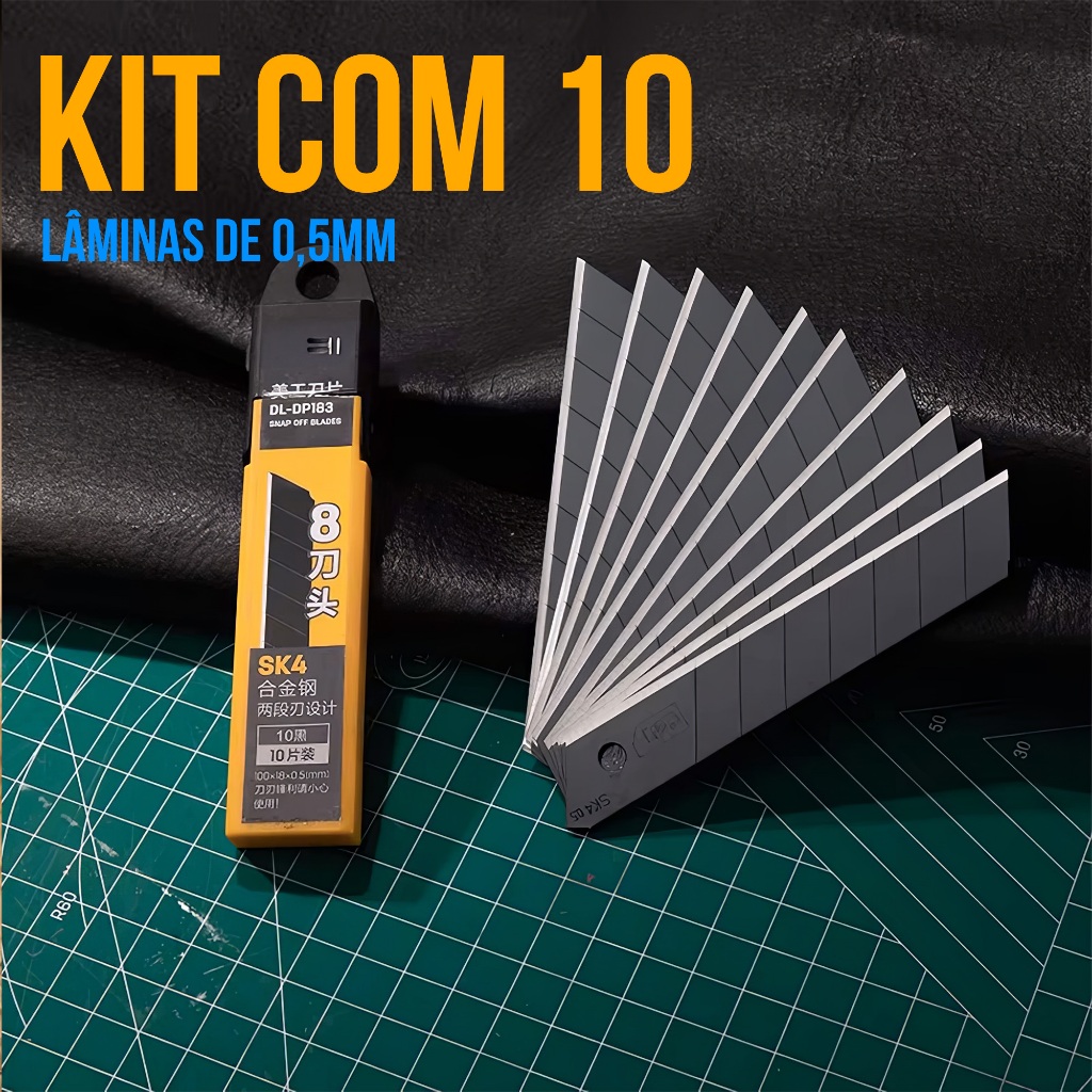 Kit Estilete Profissional Alta Qualidade Emborrachado 18mm com Trava + 3 Lâminas