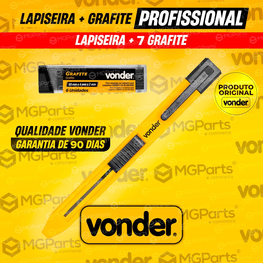 Kit Lapiseira Para Carpinteiro Marceneiro Vonder + 13 Grafites Lápis Pedreiro Drywall Construção Civil Profissional