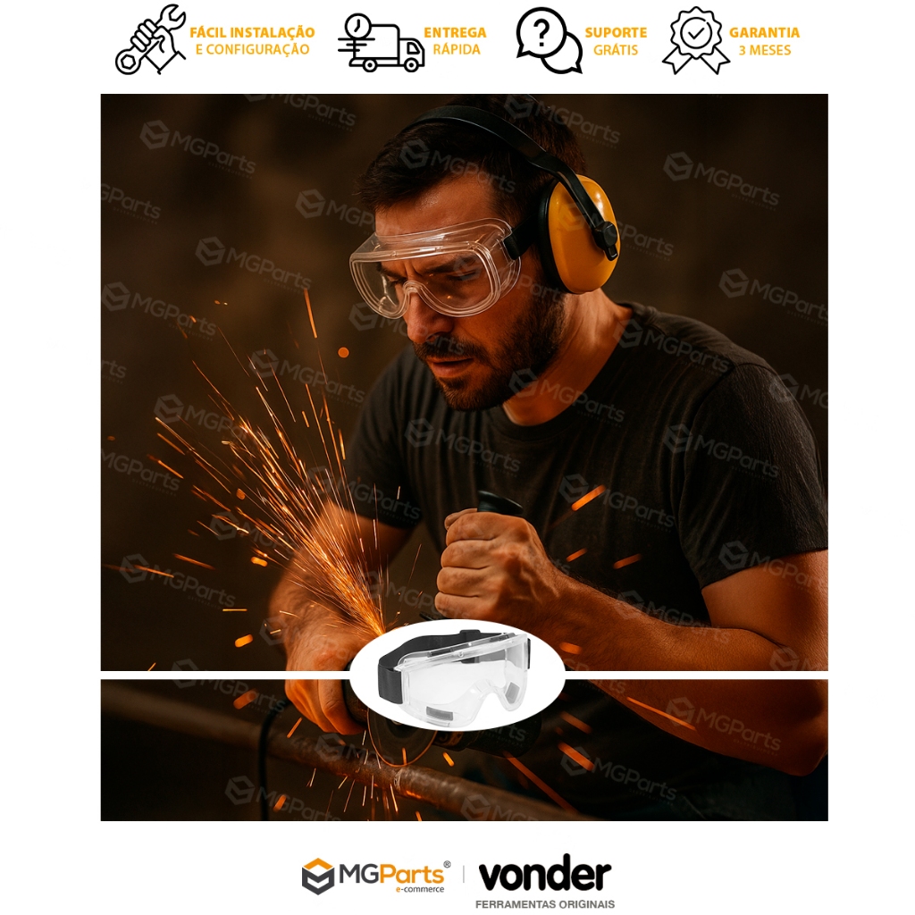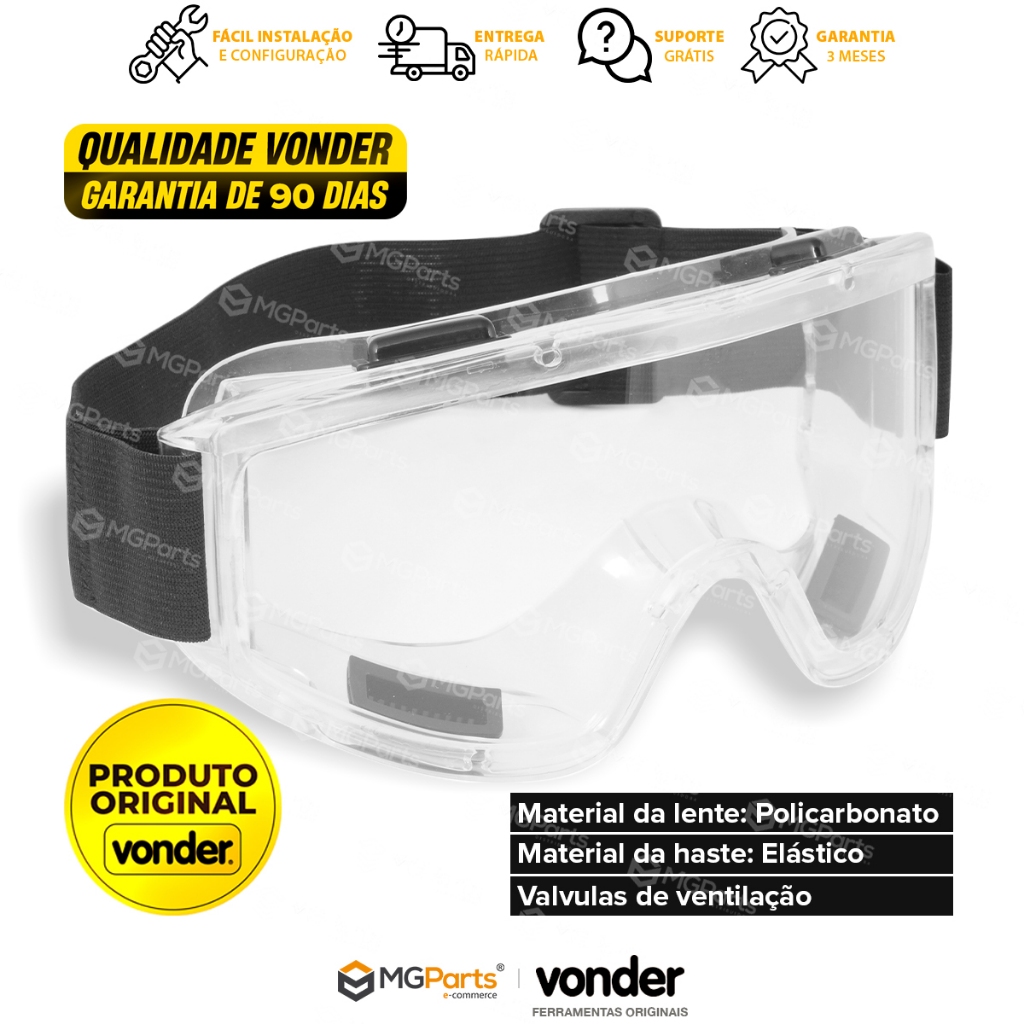 Óculos Ampla Visão Epi Proteção Vonder Profissional Splash de Segurança Banda Elástica Ciclismo
