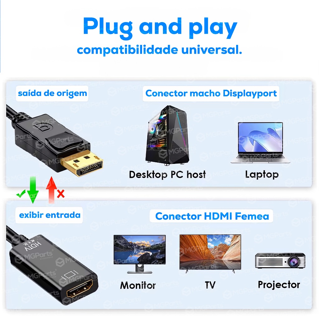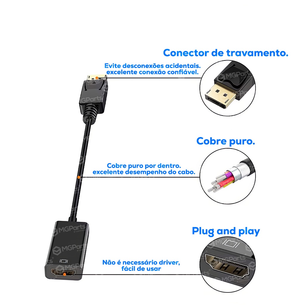 Cabo Adaptador Displayport para Hdmi Premium Profissional Conversor
