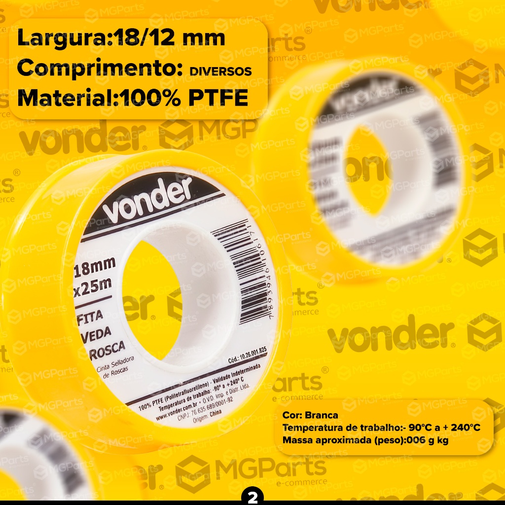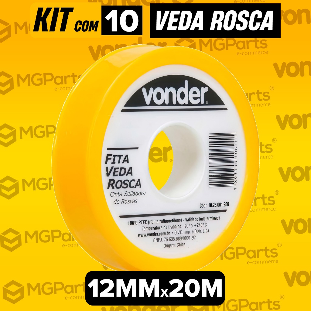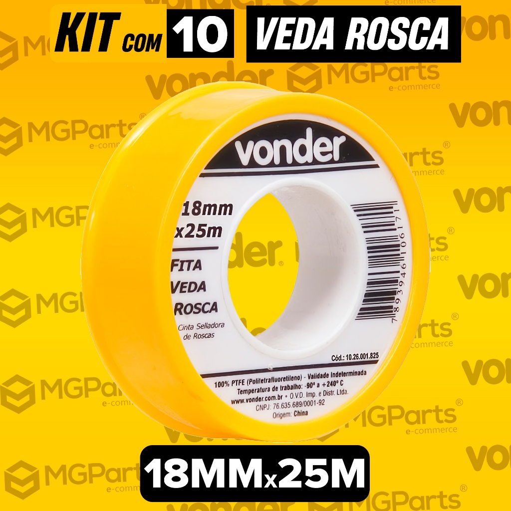 Kit 10 Fita Veda Rosca Vonder Profissional Hidráulica Vedação Cano Torneiras Original