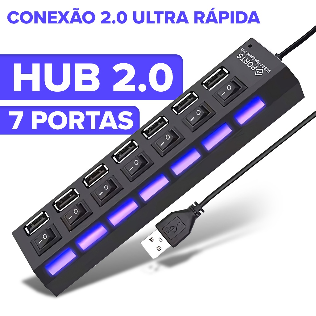 Hub Usb 3.0 Profissional 7 Portas Com Interruptor Extensão Régua Alta Velocidade Seletor Pc Externo Hd Pendrive Teclado