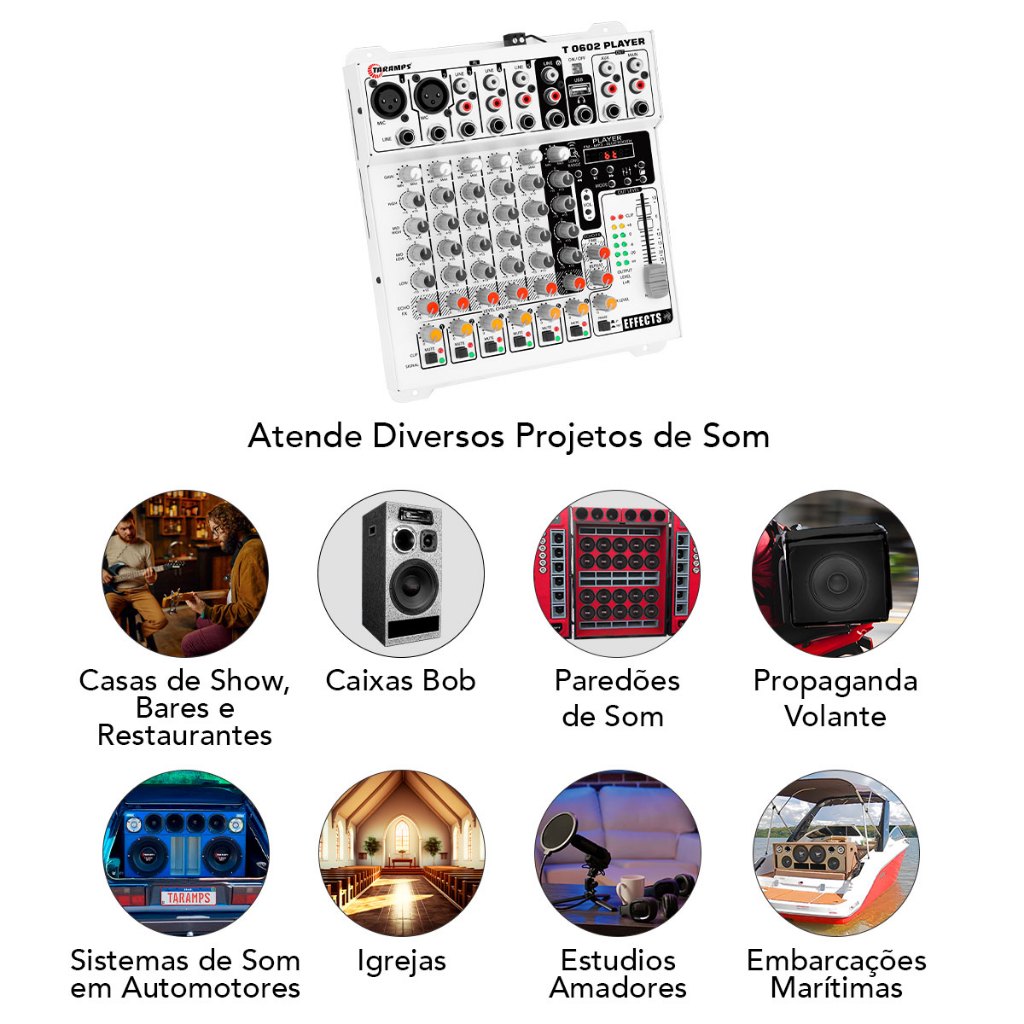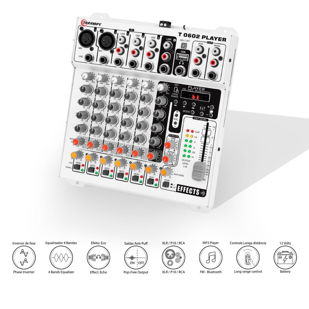 Mesa de Som Taramps T 0602 Player 6 Canais com Efeito Echo FX