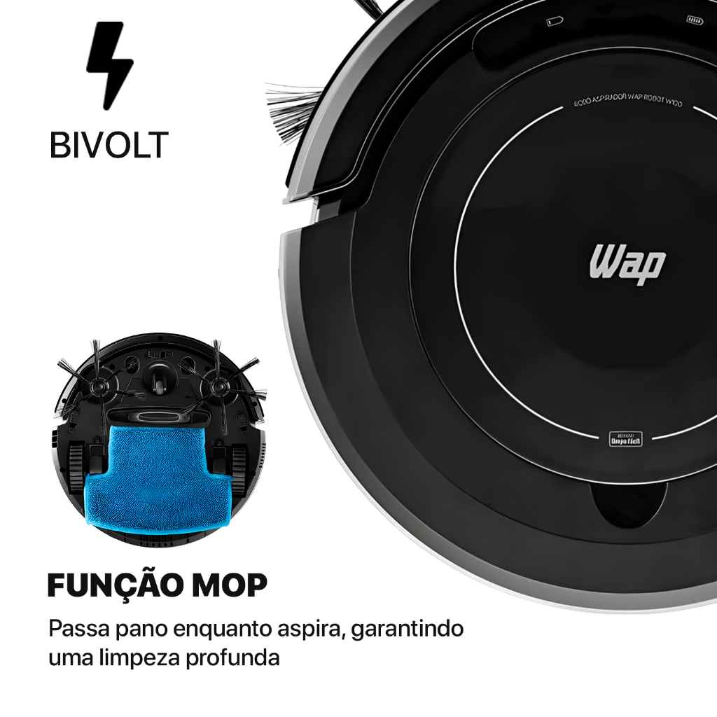 Aspirador de Pó Robô WAP Robot W100 3 em 1 Antiqueda Bivolt 17W