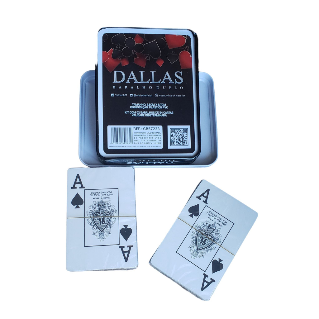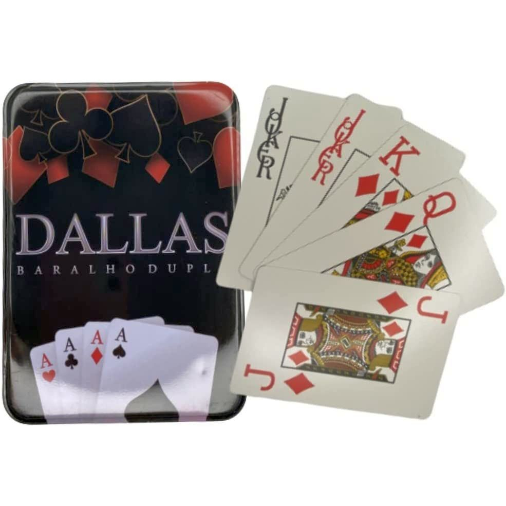 Baralho Duplo Dallas Com Cartas De Plástico - Lindo estojo metálico