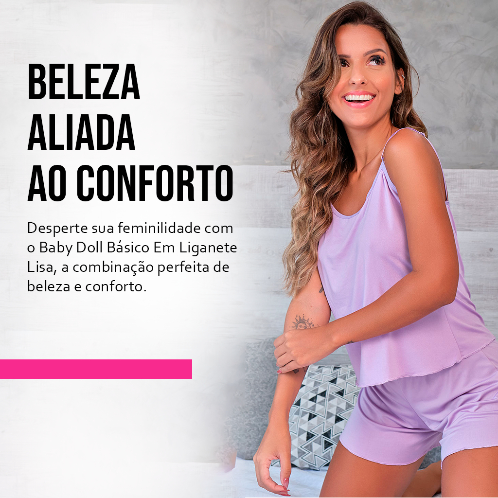 Baby Doll Básico Em Liganete Lisa Pijama Feminino Alça Regulável Toque Fresco Conforto Durabilidade