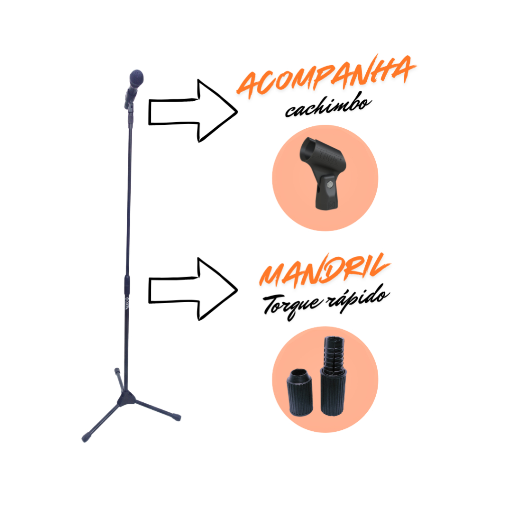 Pedestal de Microfone Clean Reto com Regulagem de altura de 1m a 1,60m