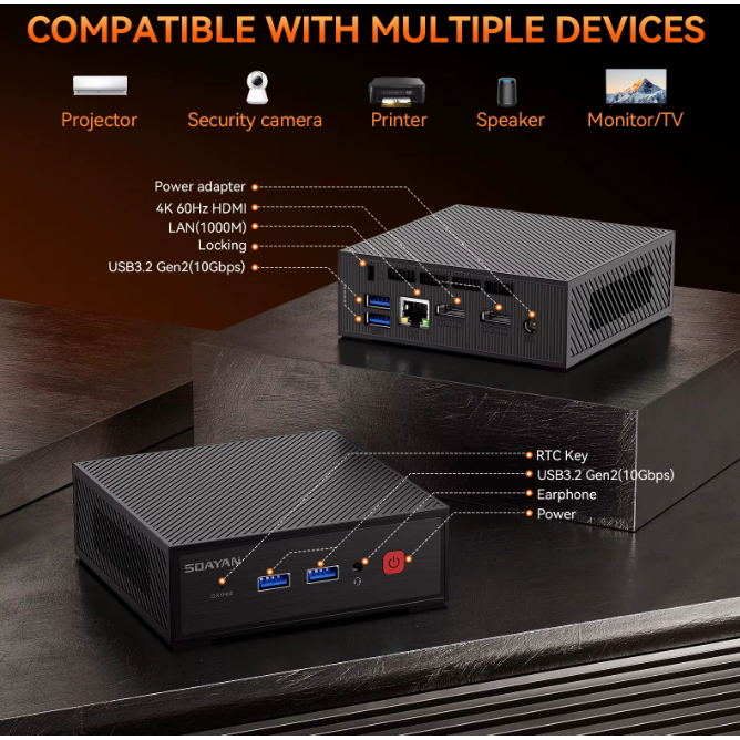 Mini Pc Mini MN-N2 256gb Ssd 8gb Ram Processador Intel Celeron LAN 1000M WIFI5 CLR CMOS