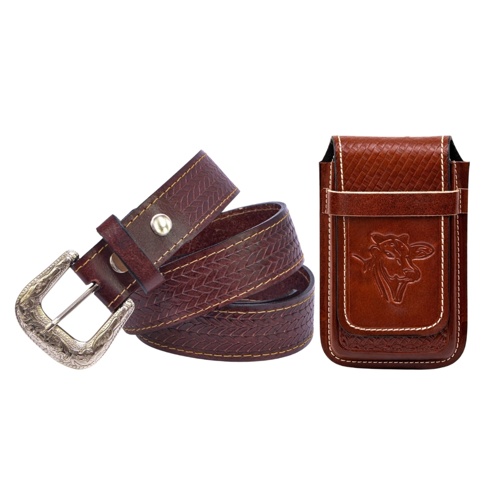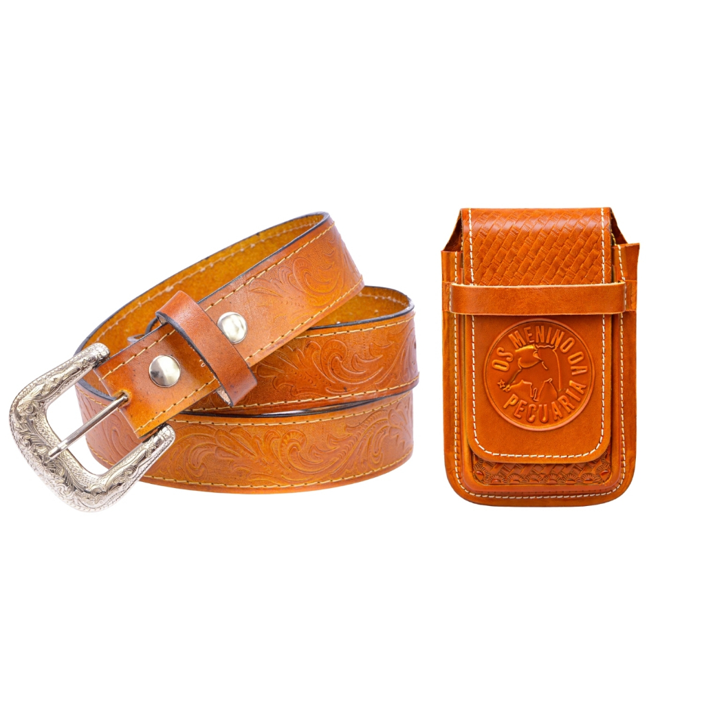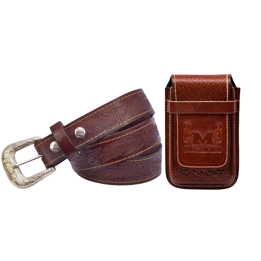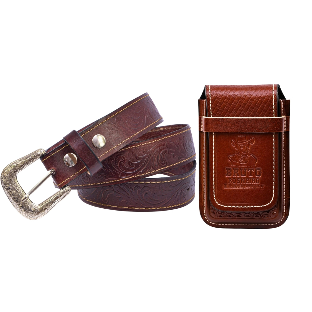 Kit Cowboy Cinto Country + Capinha Bainha em De Celular Couro
