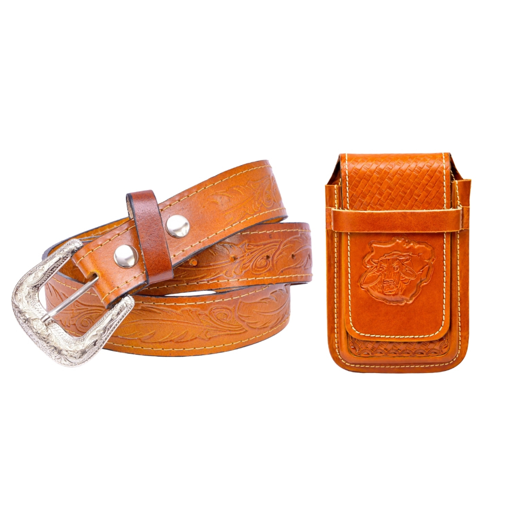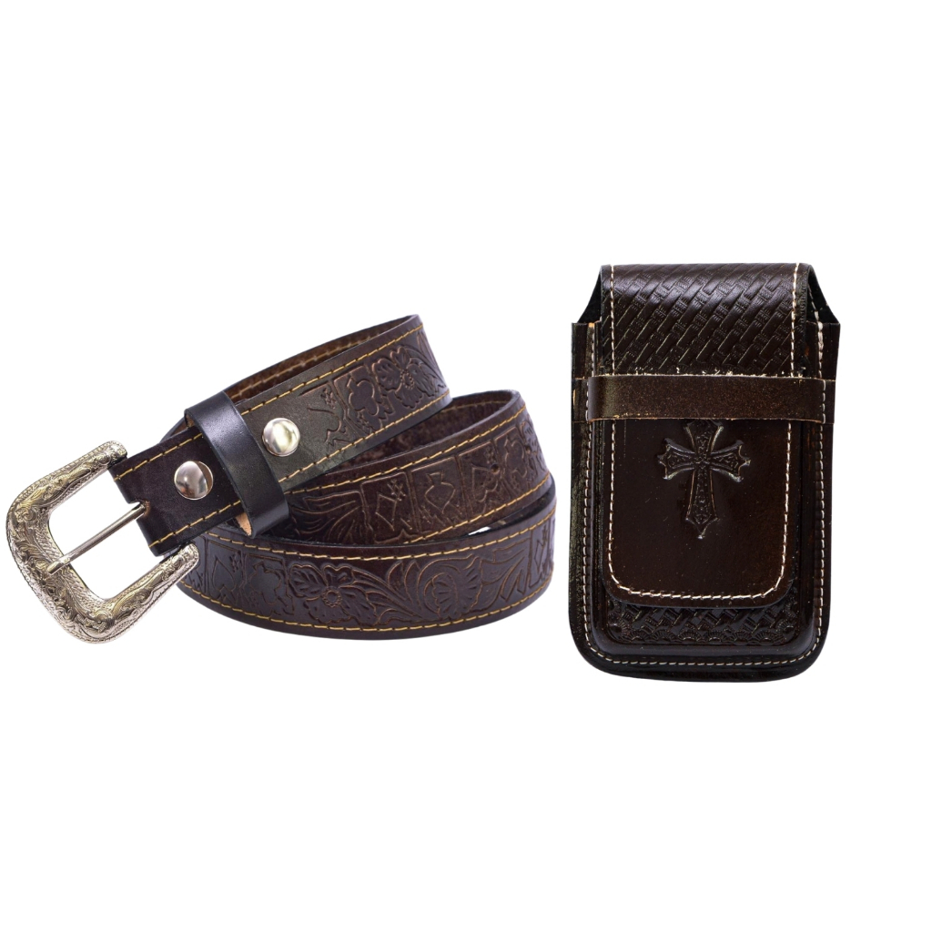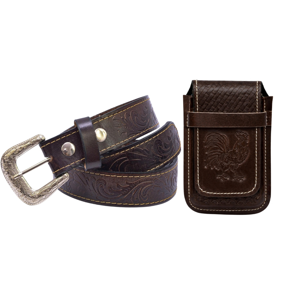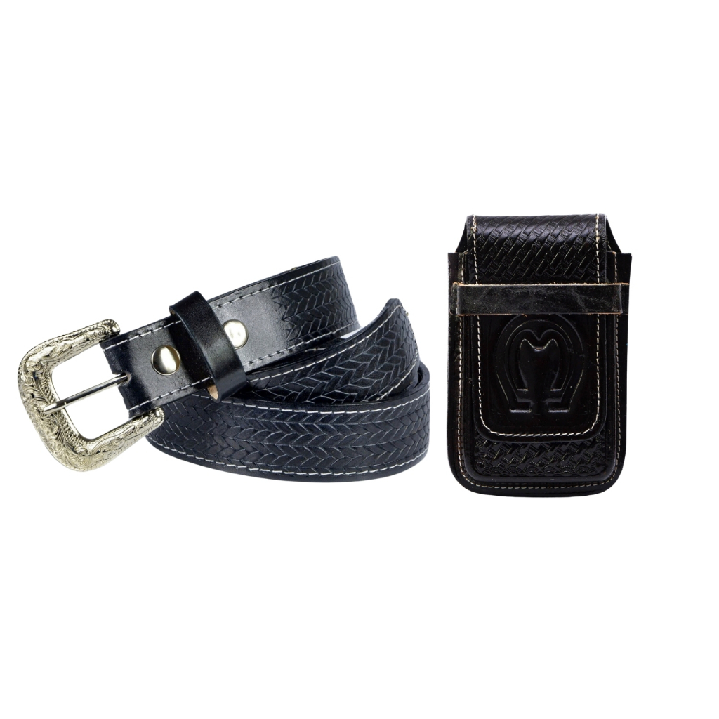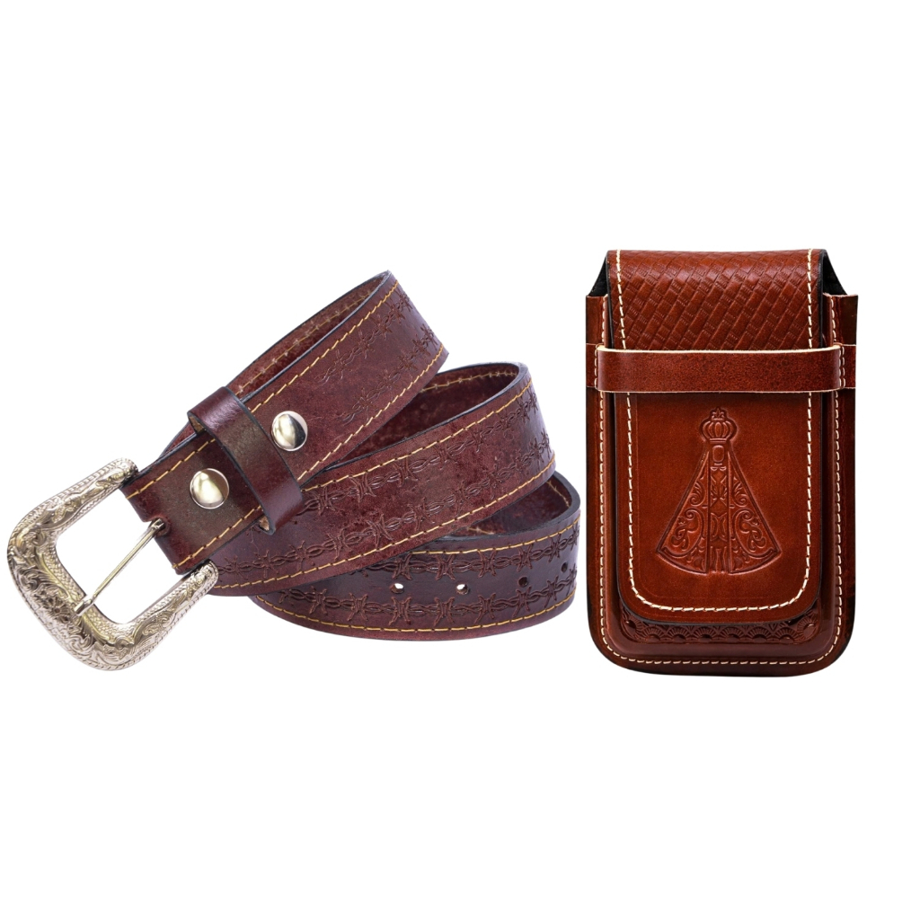 Kit Cowboy Cinto Country + Capinha Bainha em De Celular Couro