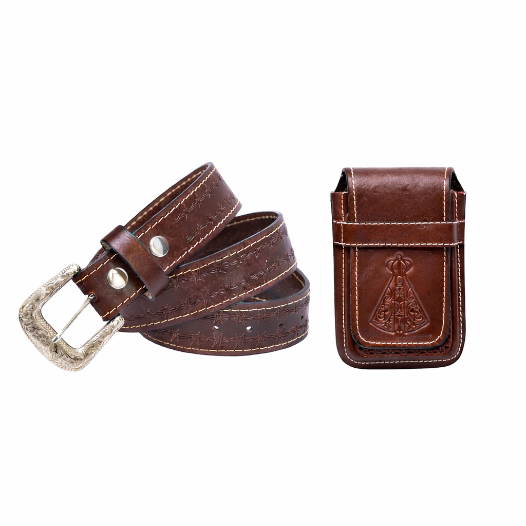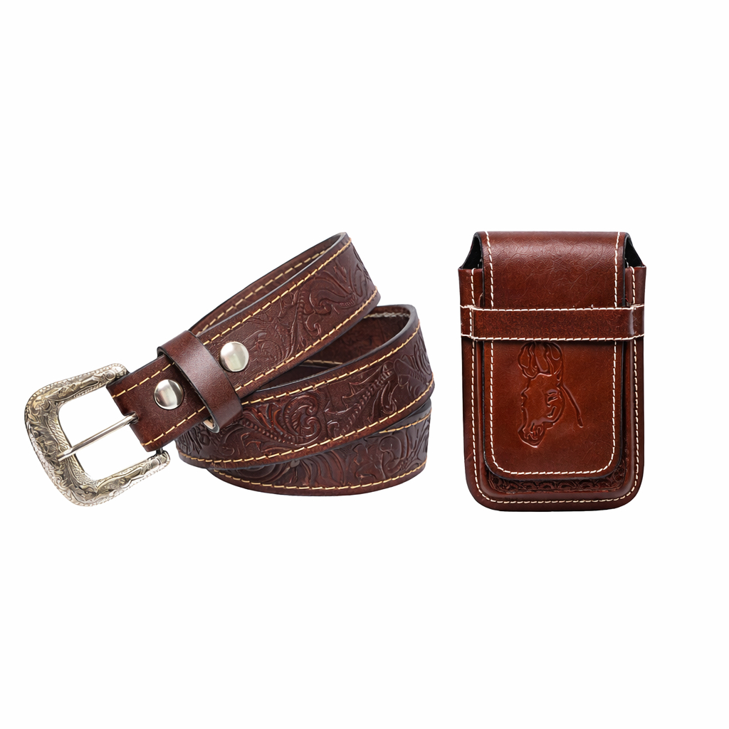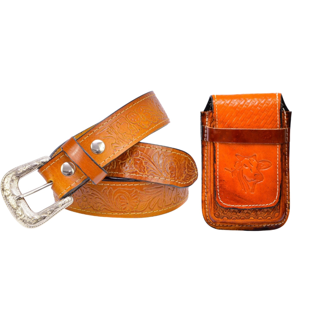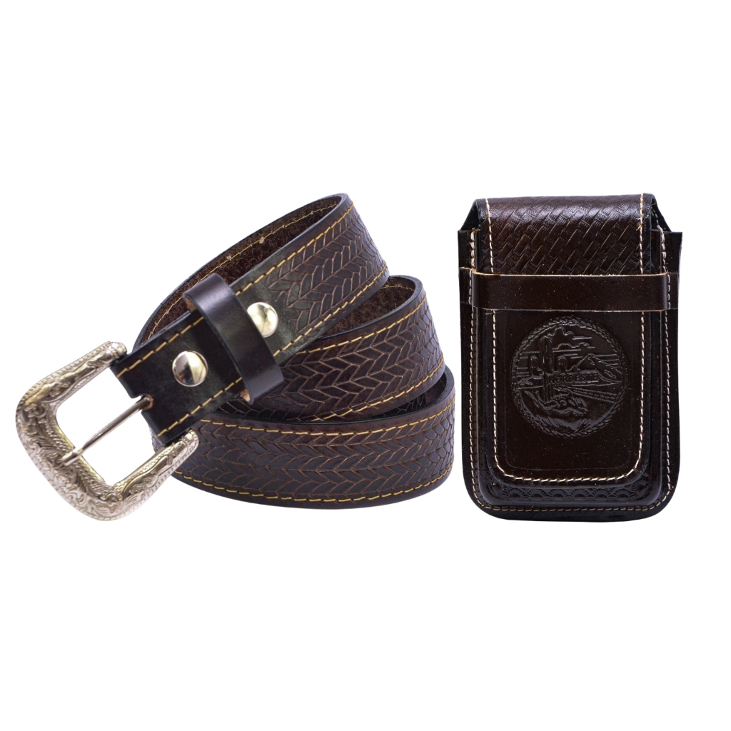 Kit Cowboy Cinto Country + Capinha Bainha em De Celular Couro