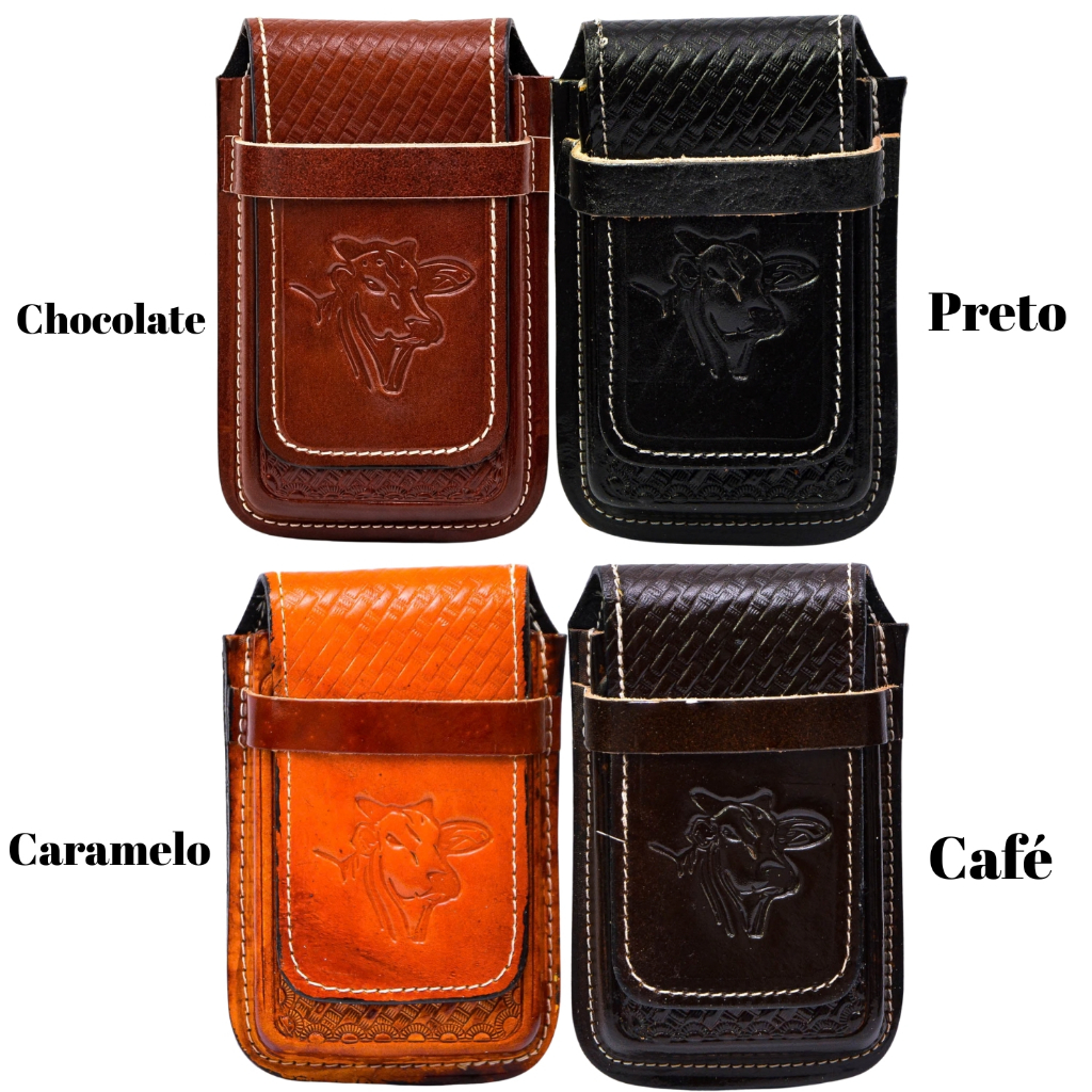 Bainha de Celular Universal Forrada Feita em Couro Legítimo Country Muladeiro Rustico Dura